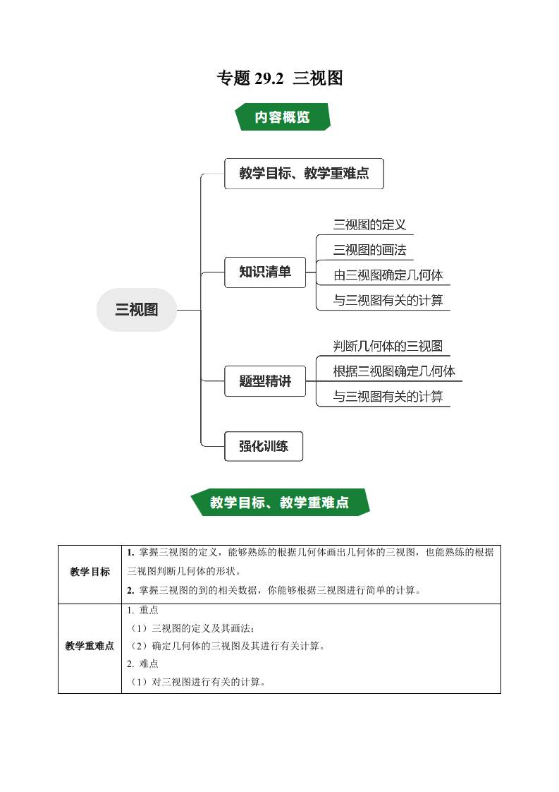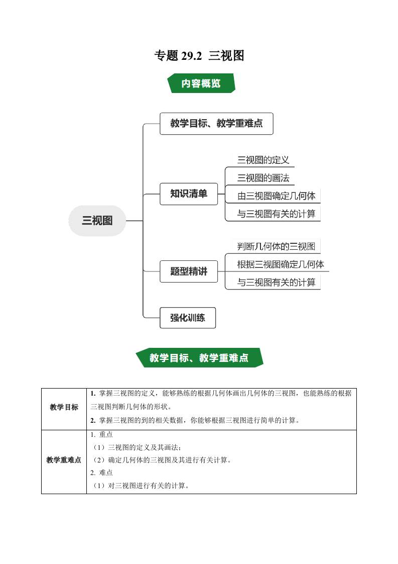 专题29.2 三视图(高效培优讲义)(原卷版)