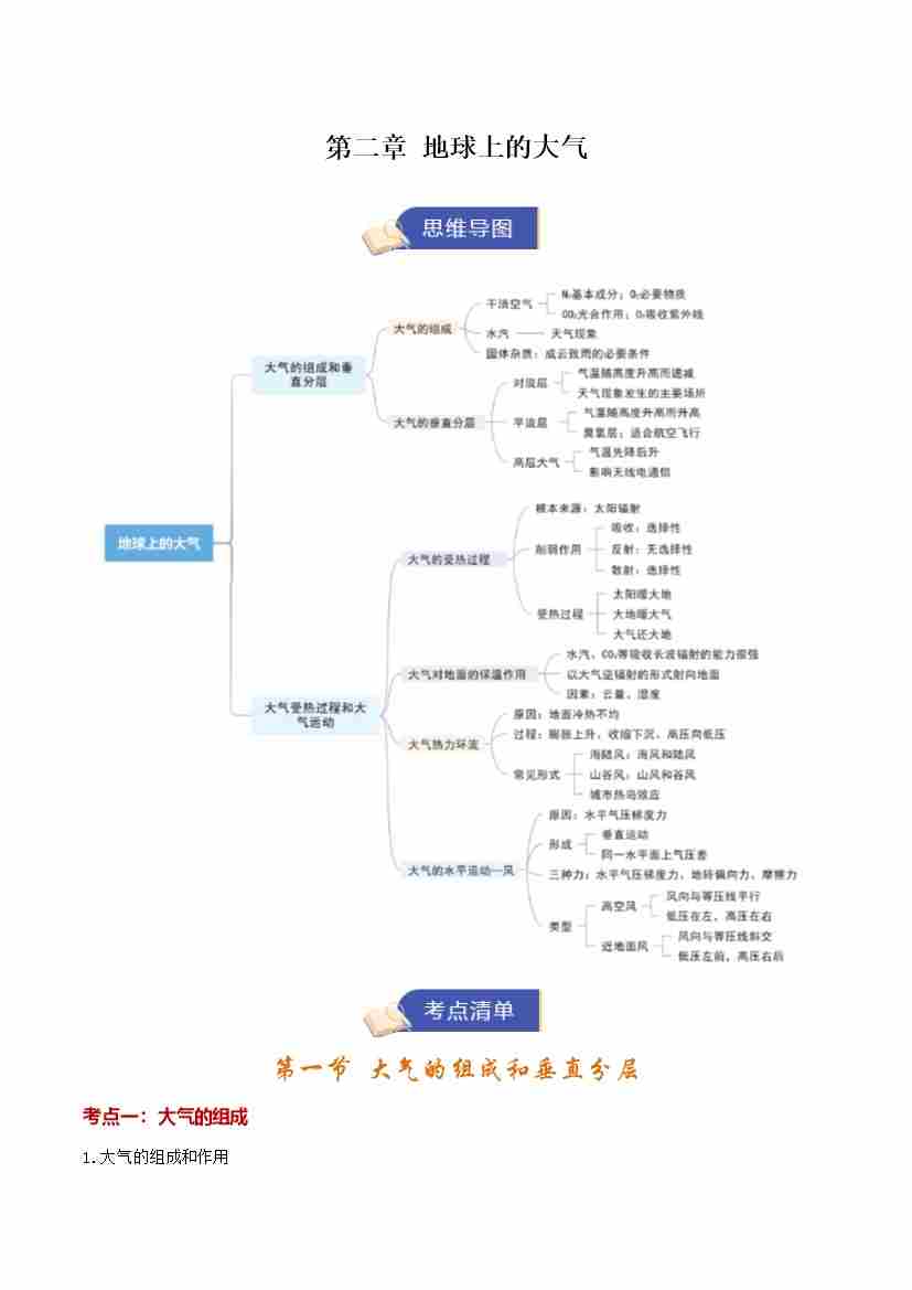 第二章《地球上的大气》(期末复习知识清单)(教师版)