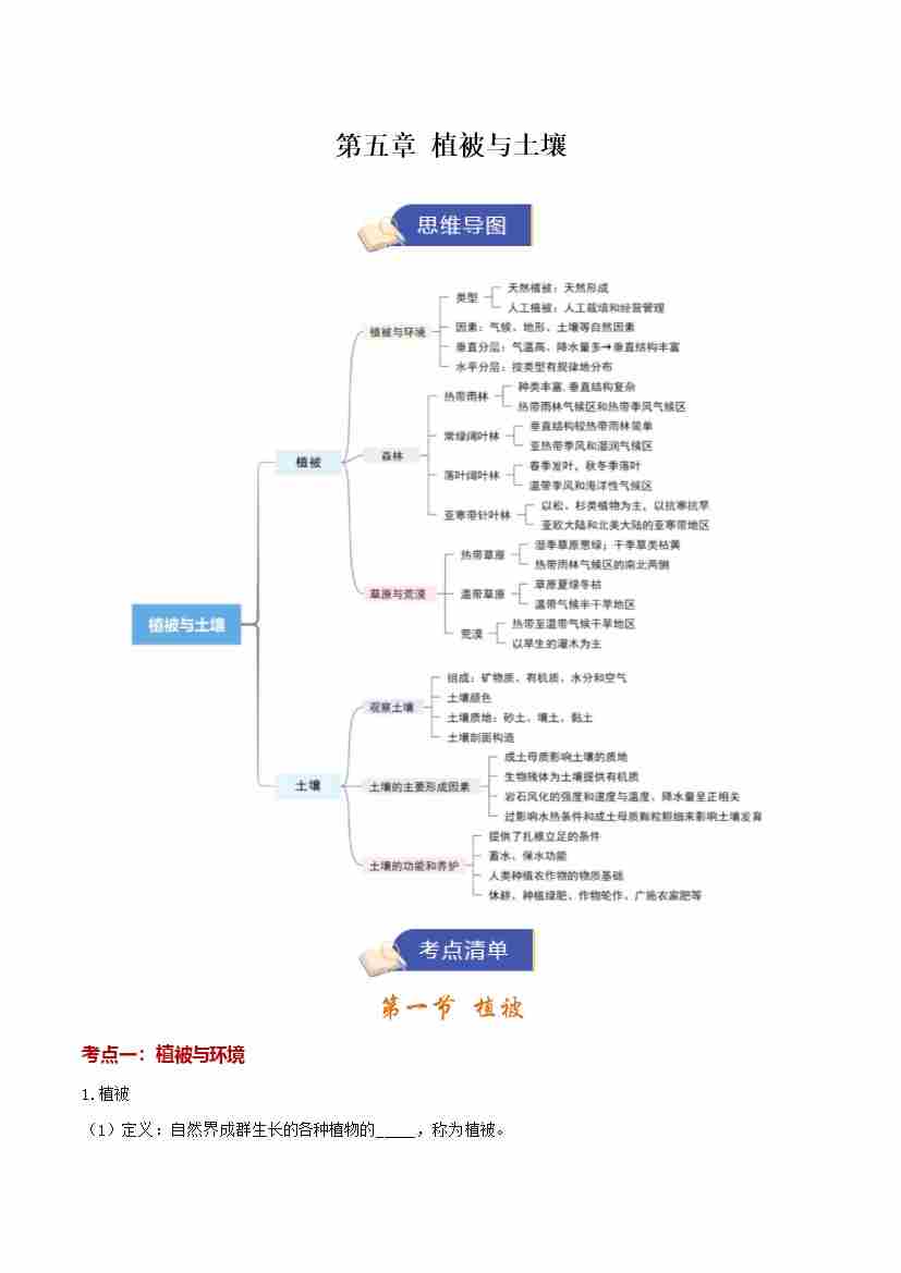 第五章《植被与土壤》(期末复习知识清单)(教师版)