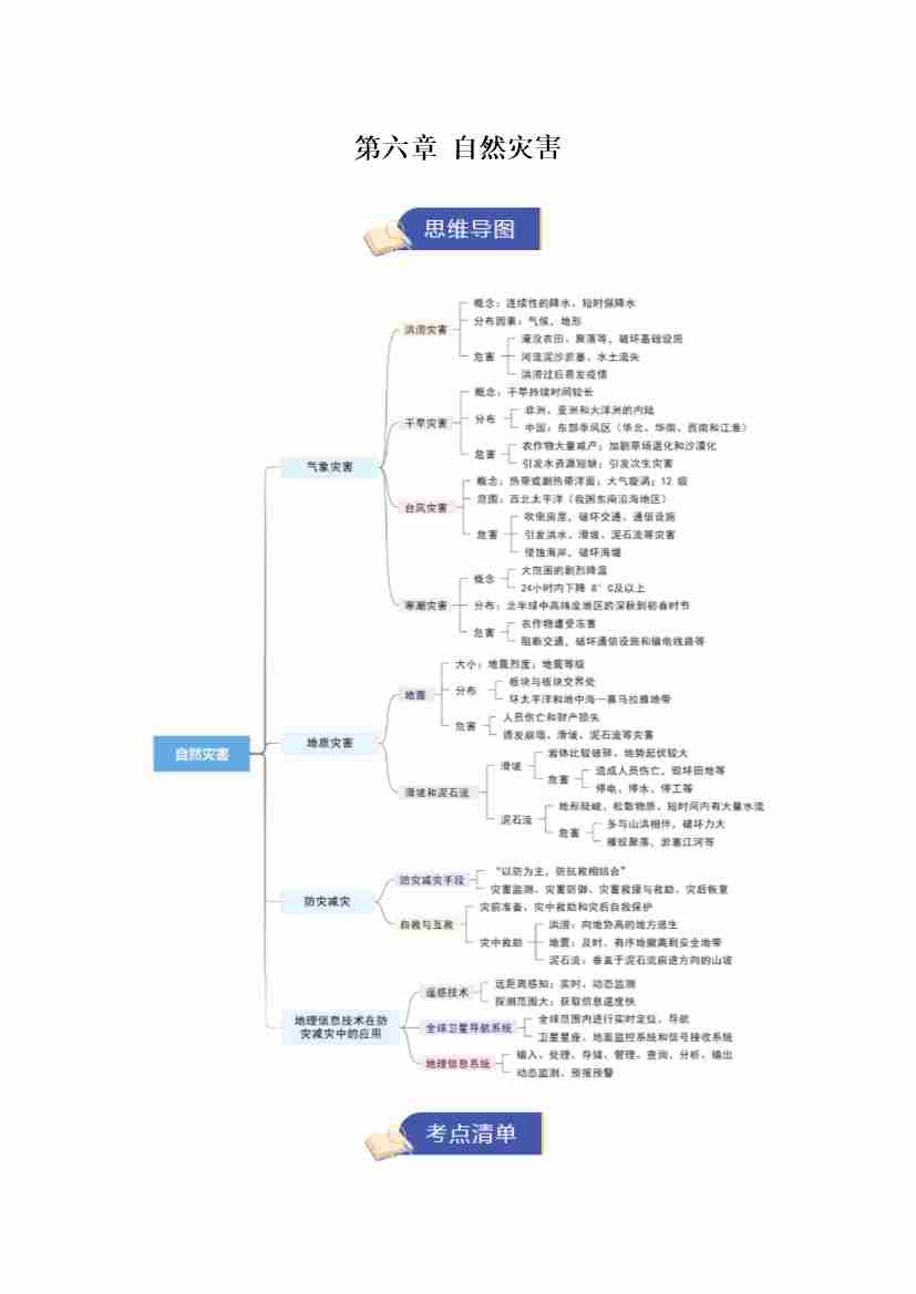 第六章《自然灾害》(期末复习知识清单)(教师版)