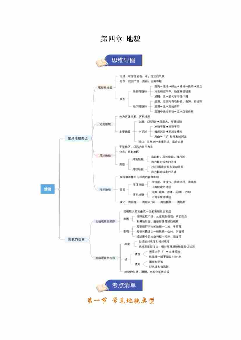 第四章《地貌》(期末复习知识清单)(教师版)