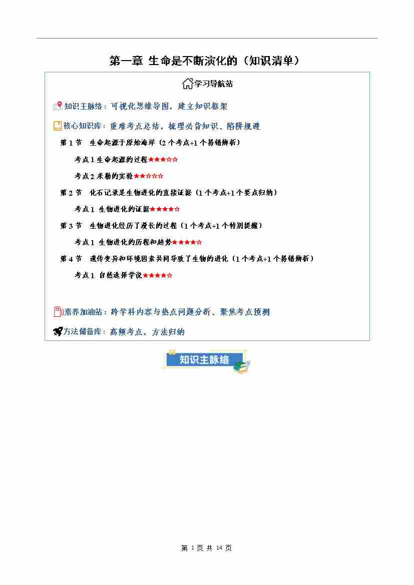 第一章 生命是不断演化的(知识清单)(原卷版)