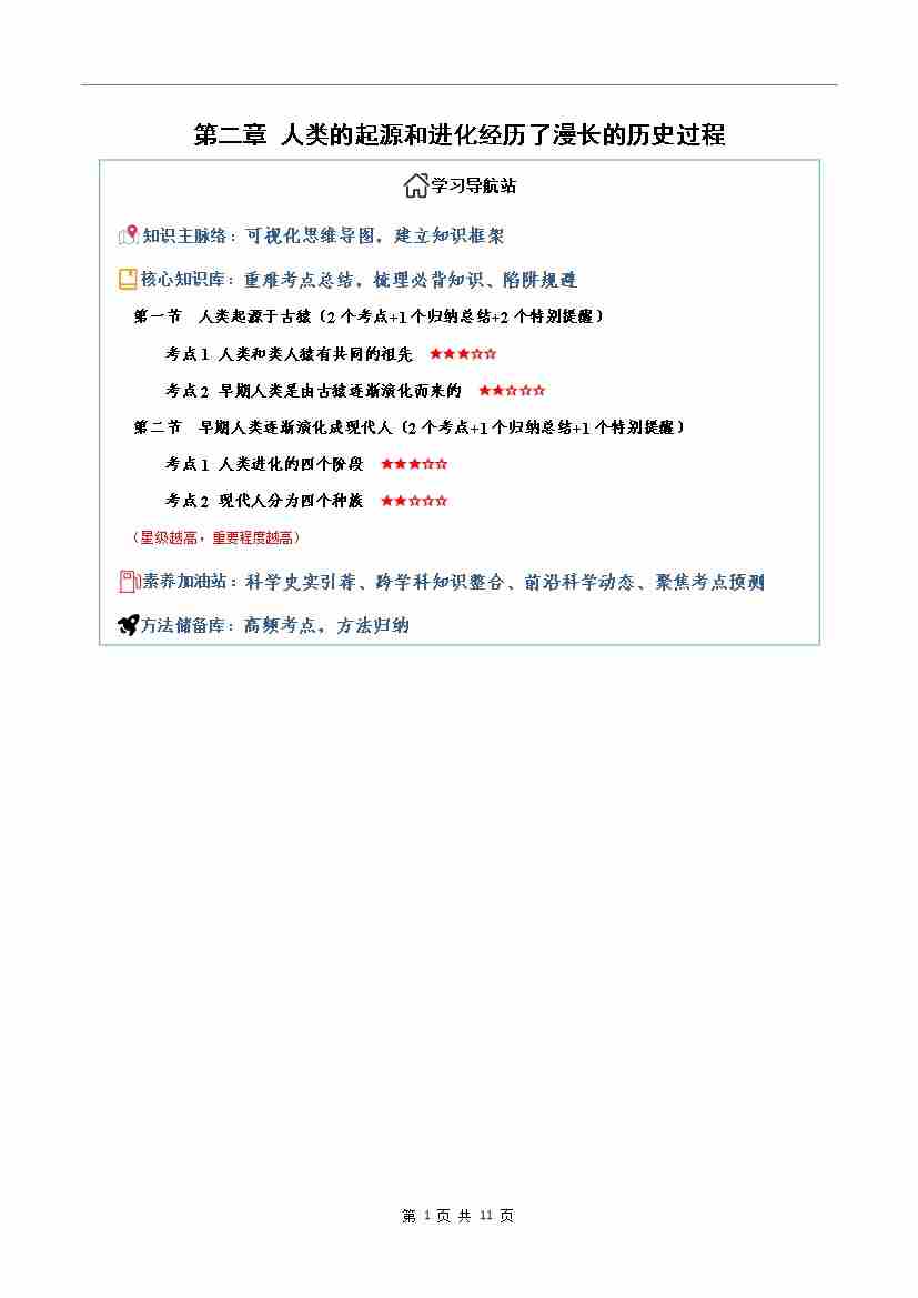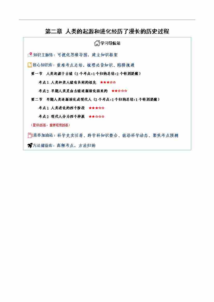 第二章 人类的起源和进化经历了漫长的历史过程(知识清单)(解析版)
