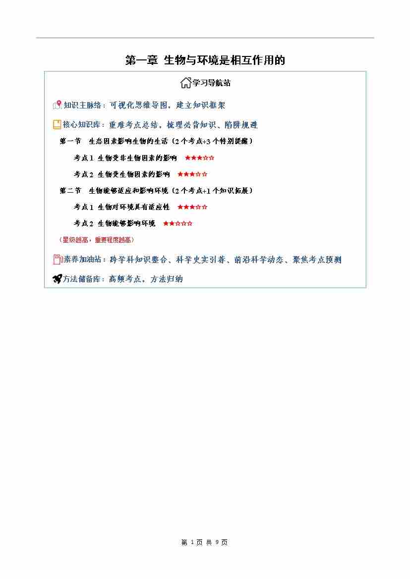 第八单元 第一章 生物与环境是相互作用的(知识清单)(解析版)