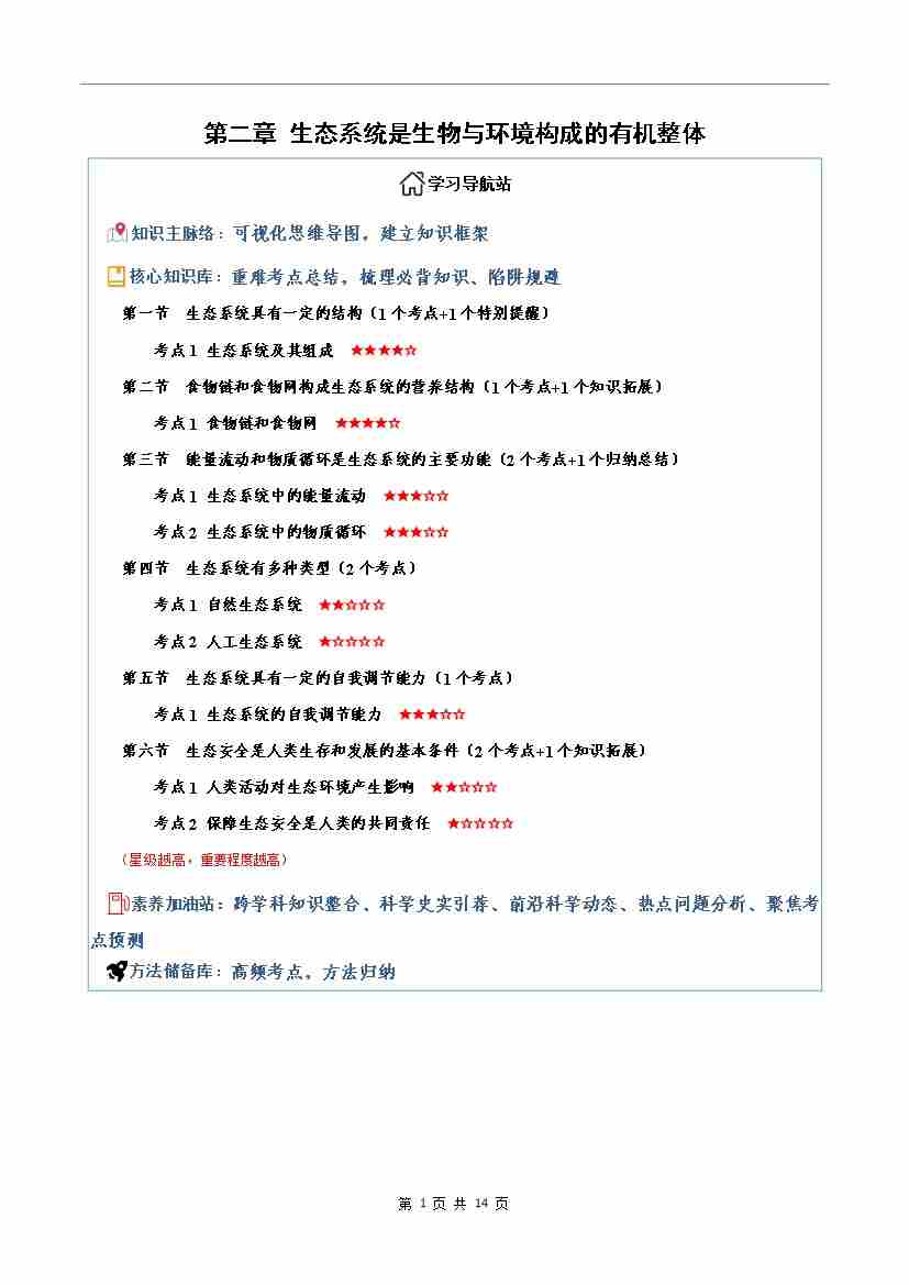 第八单元 第二章 生态系统是生物与环境构成的有机整体(知识清单)(原卷版)