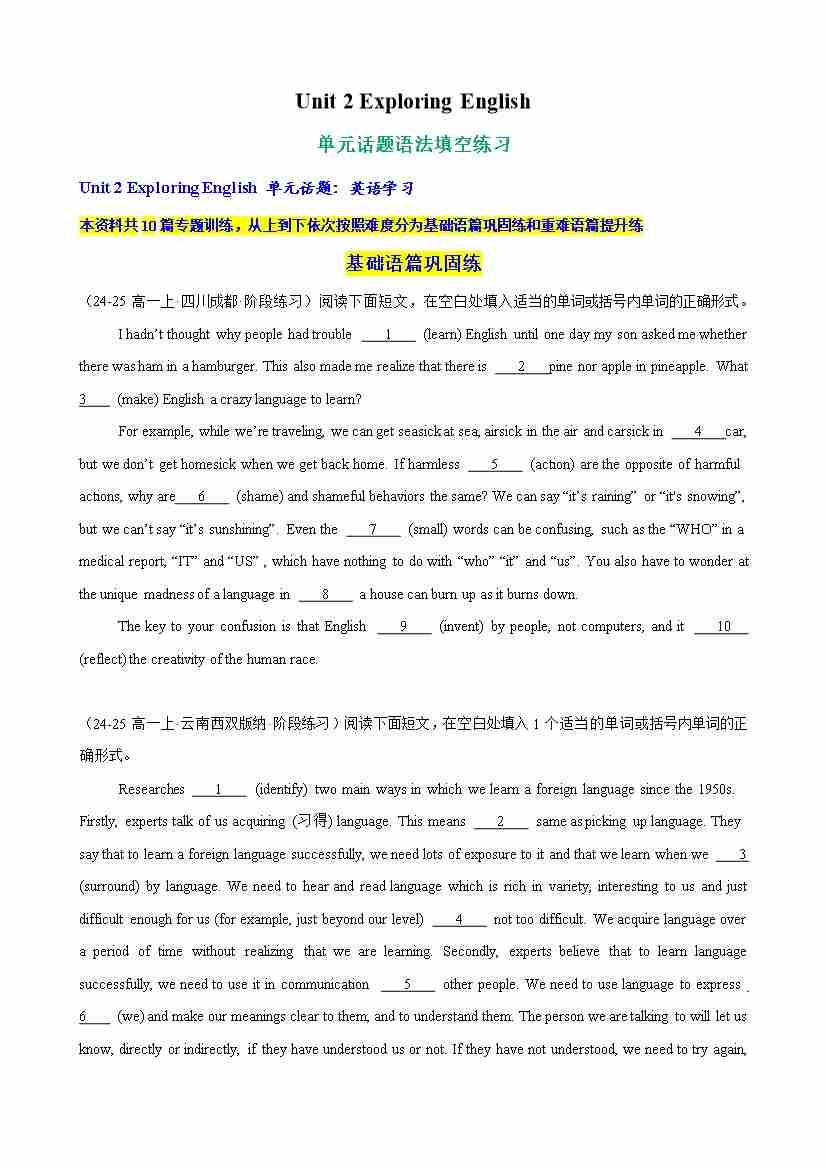 Unit 2 Exploring English 单元话题语法填空练习(学生版)