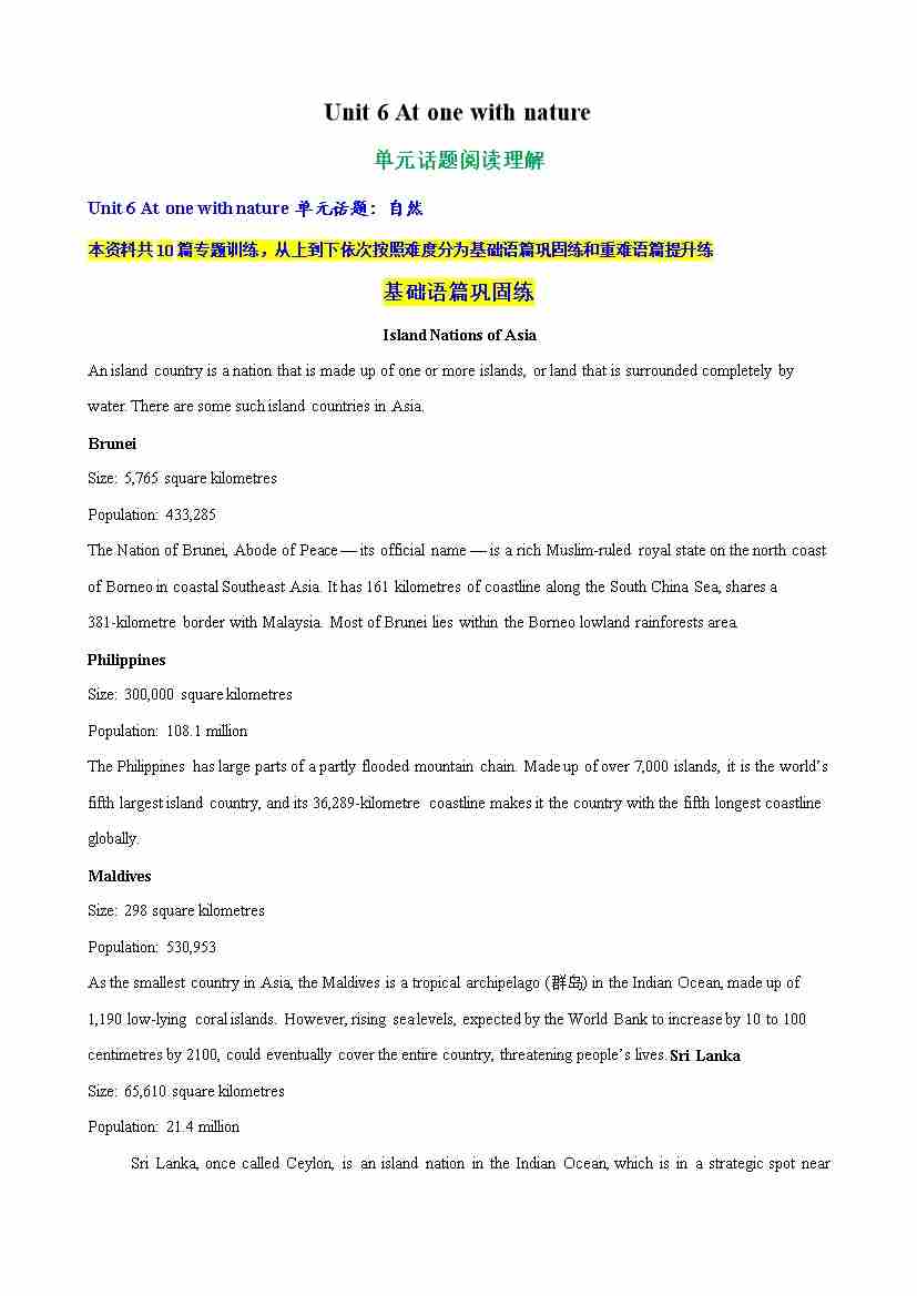 Unit 6 At one with nature单元话题阅读理解练习(原卷版)