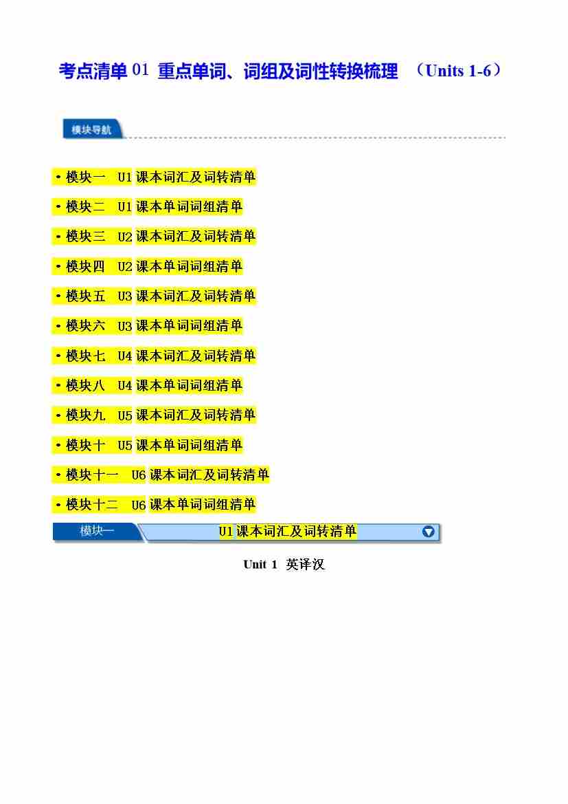 考点清单01 重点单词、词组及词性转换梳理(Units 1-6)-(沪教版五四制2024)