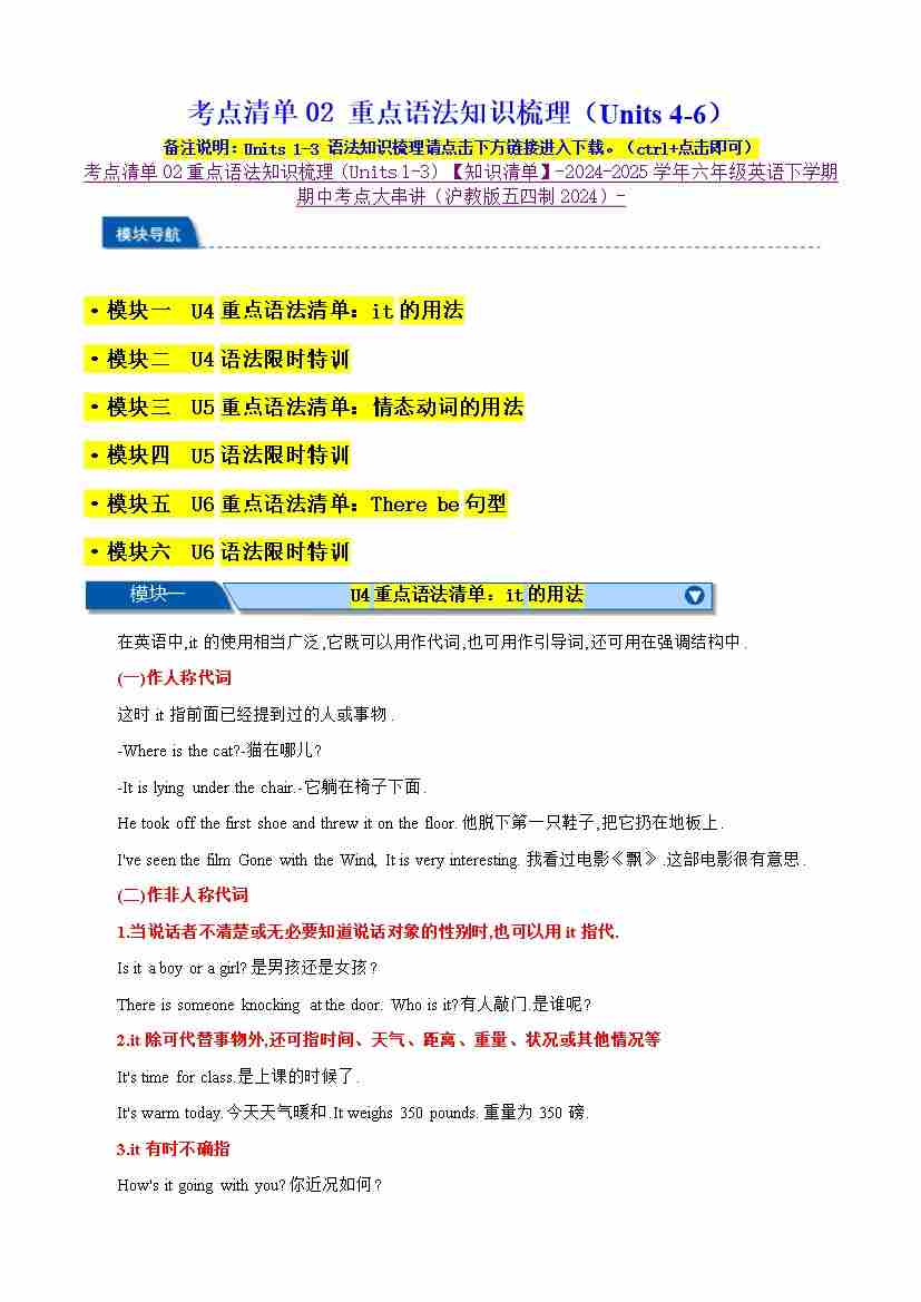 考点清单02 重点语法知识梳理(Units 4-6)(教师版)