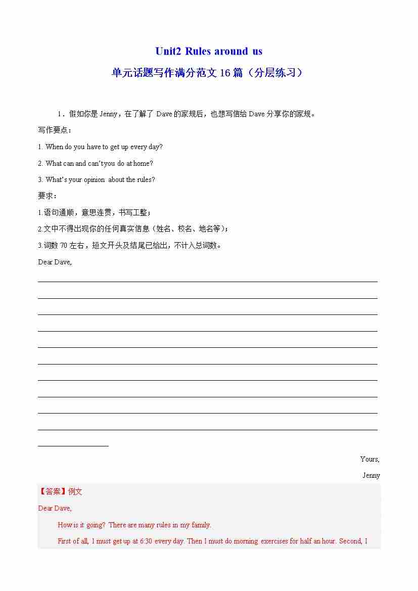 Unit2 Rules around us 单元话题写作满分范文16篇(分层练习)(解析版)