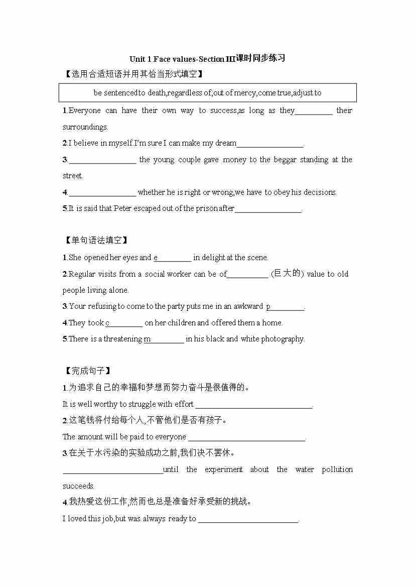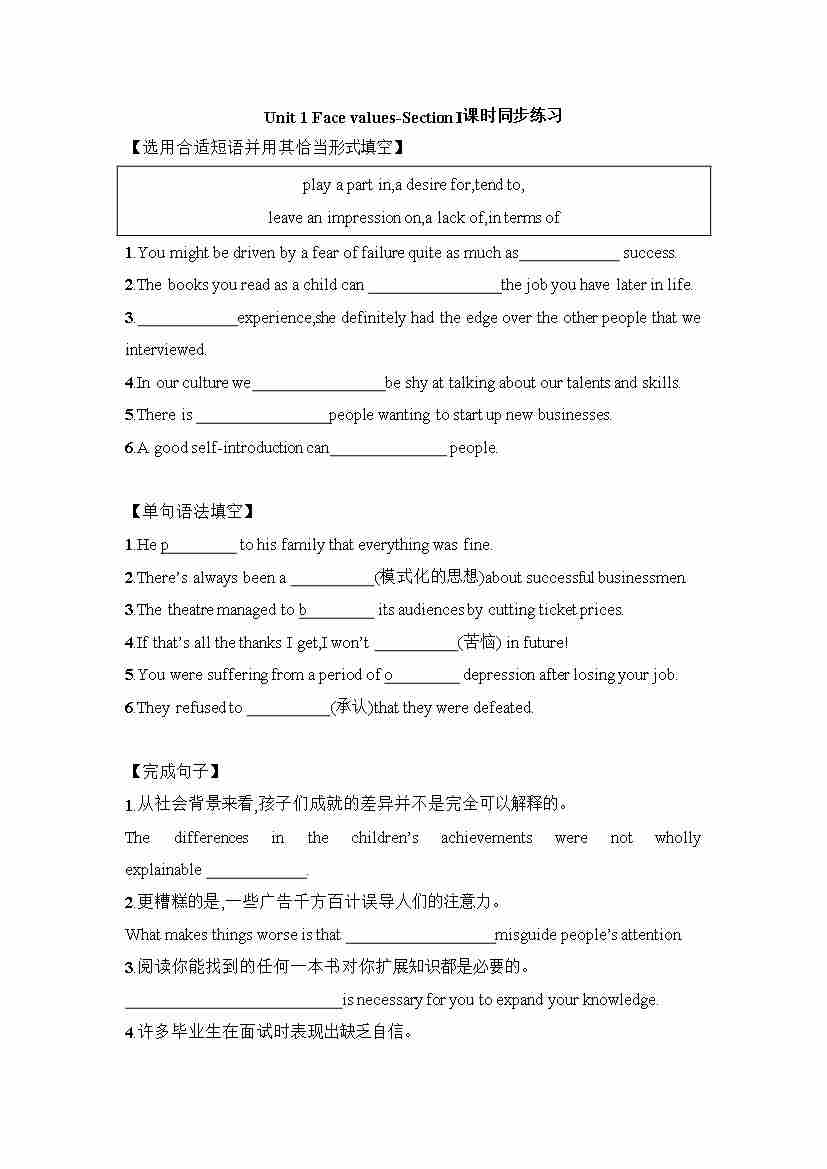 Unit 1 Starting out & Understanding ideas 课时同步练习-~高中英语外研版(2019)选择性必修第三册