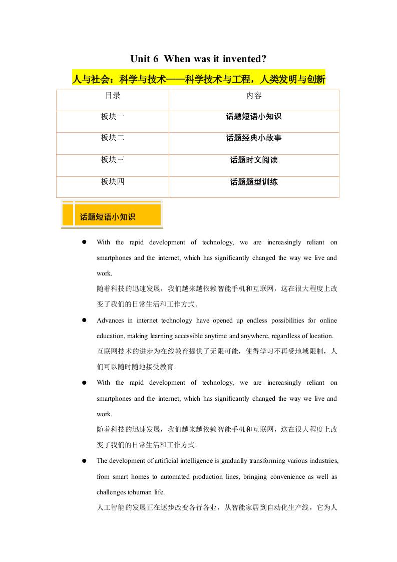②寒假专项培优-Unit 6 When was it invented? (人与社会:科学与技术) (学生版)2025年九年级英语寒假衔接讲练 (人教版)