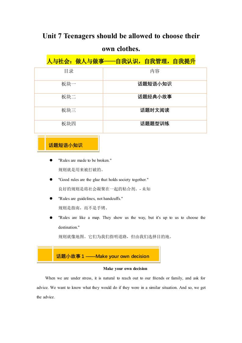 ②寒假专项培优-Unit 7 (人与自我:做人与做事) (学生版)2025年九年级英语寒假衔接讲练 (人教版)