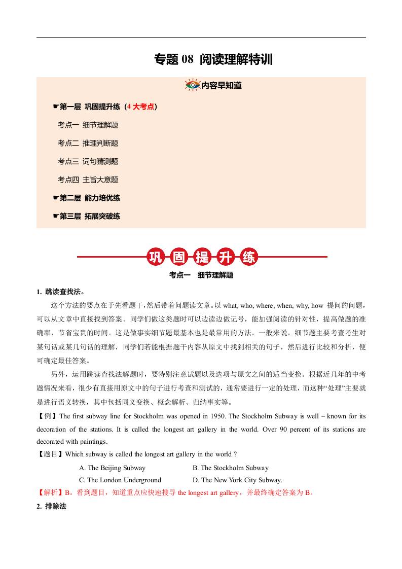 ②寒假专项培优-Unit 1 How can we become good learners? (人与自我:语言学习)【同步拓展阅读】 (教师版)2025年九年级英语寒假衔接讲练 (人教版)