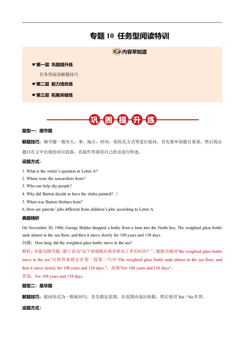 ①寒假巩固复习10 任务型阅读特训 (教师版)2025年九年级英语寒假衔接讲练 (人教版)