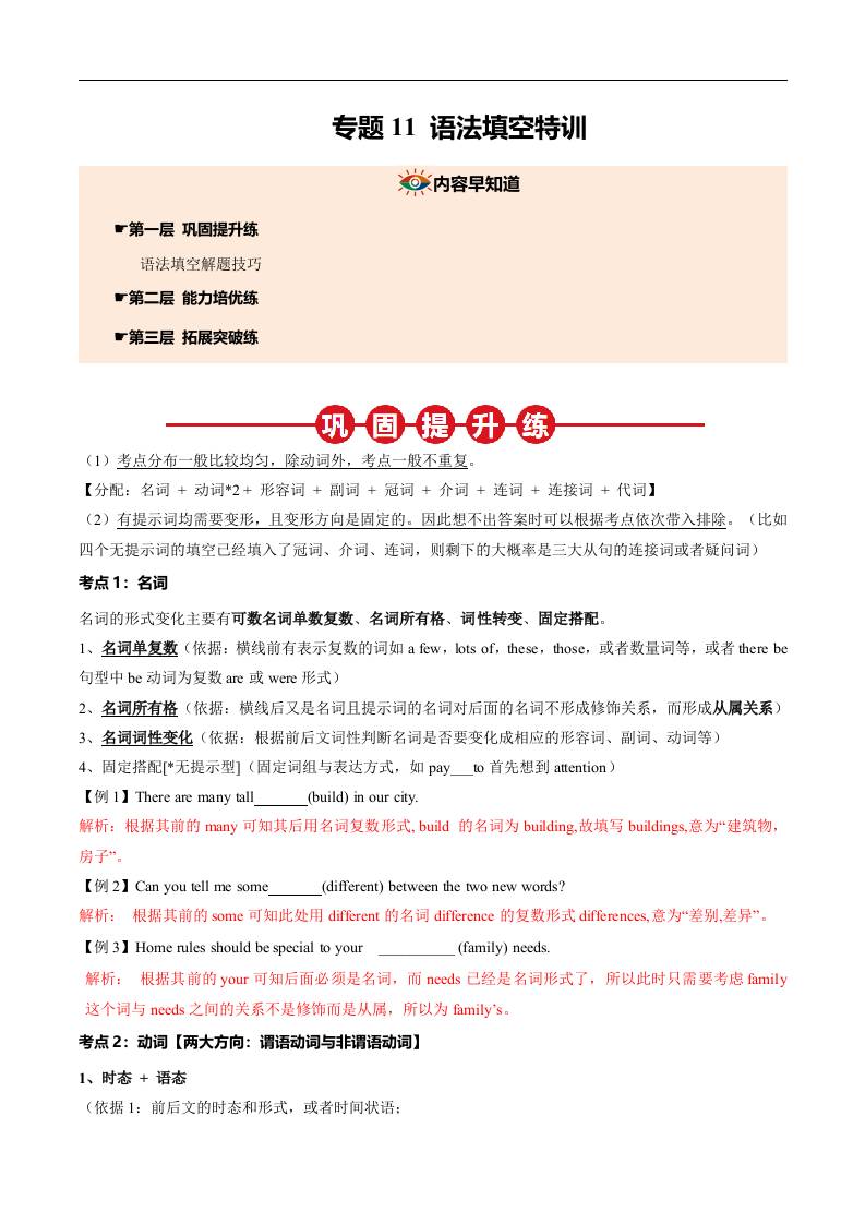 ①寒假巩固复习11 语法填空特训 (教师版)2025年九年级英语寒假衔接讲练 (人教版)
