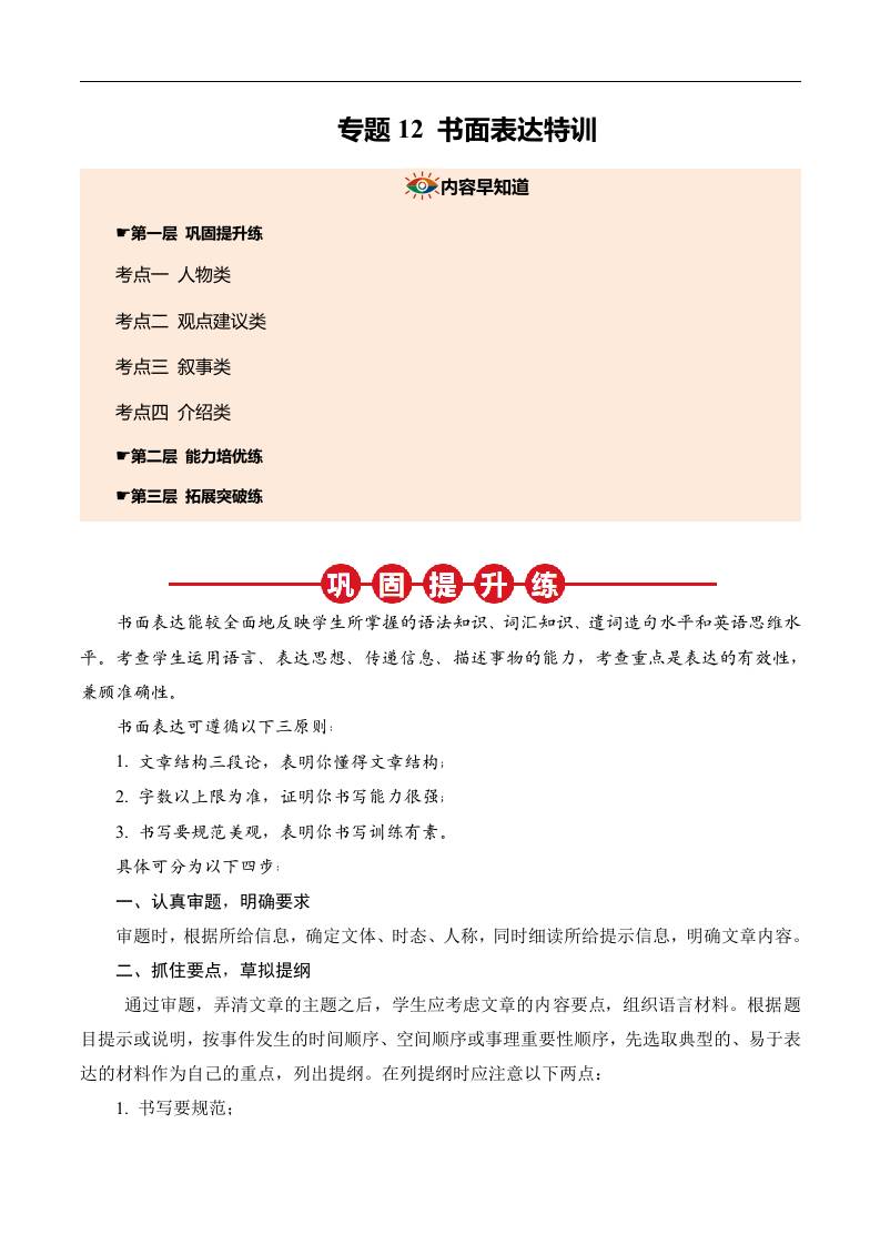①寒假巩固复习12 书面表达解题技巧 (学生版)2025年九年级英语寒假衔接讲练 (人教版)