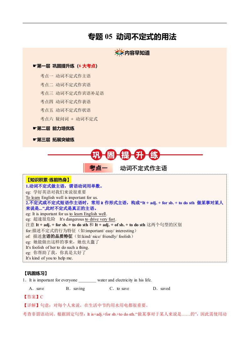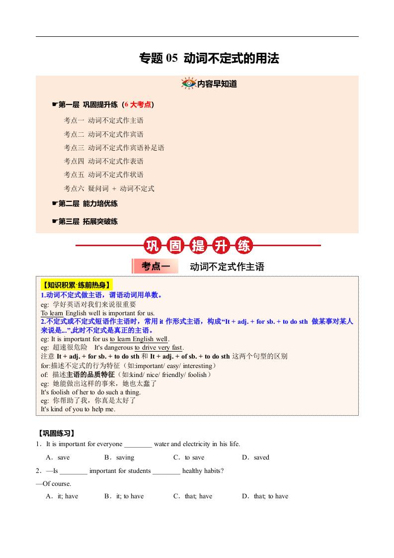 ①寒假巩固复习05 动词不定式 (学生版)2025年九年级英语寒假衔接讲练 (人教版)
