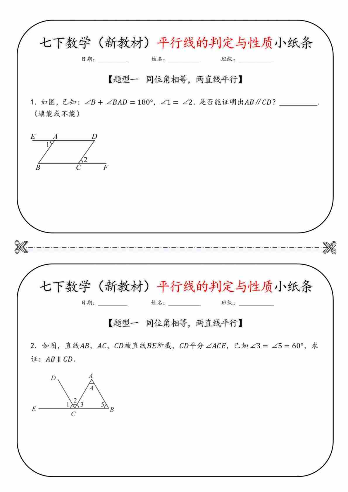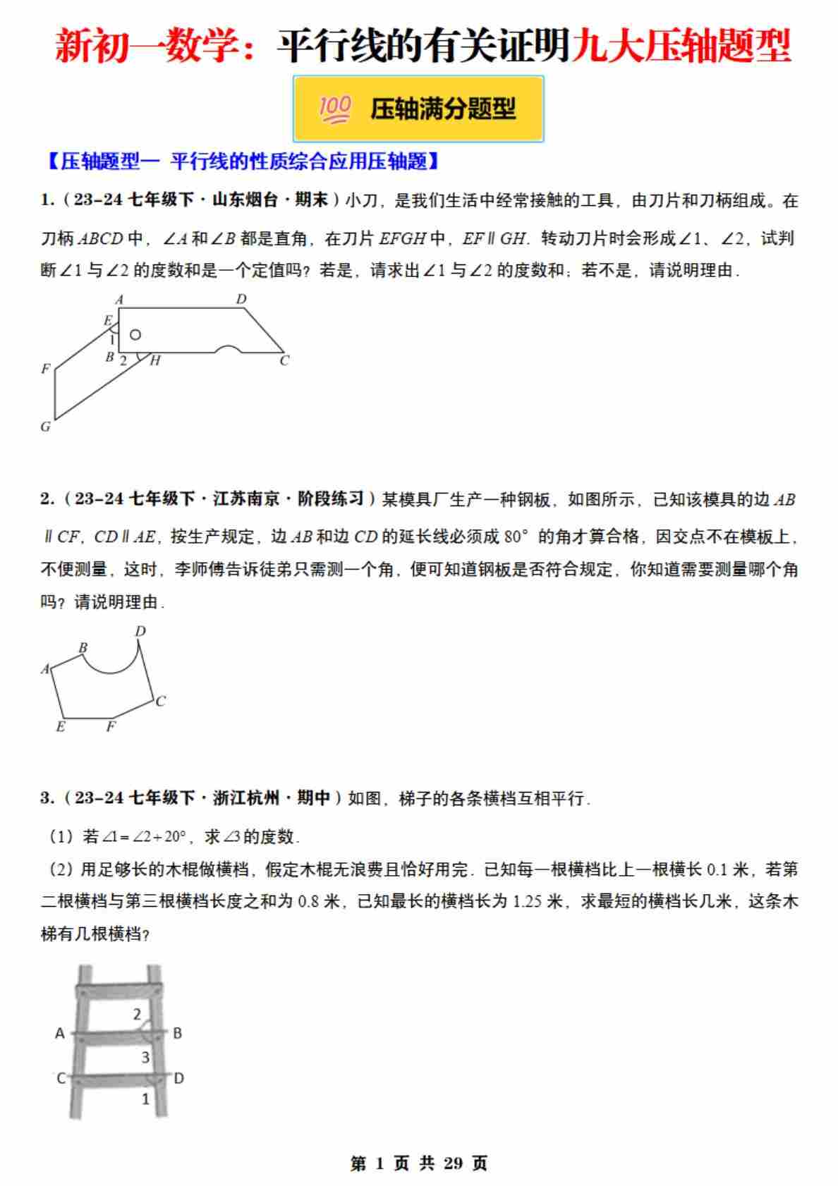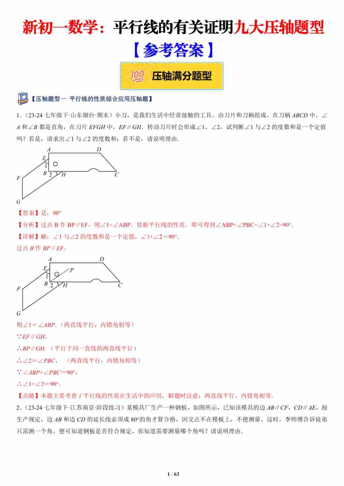 七下数学平行线的有关证明九大压轴满分题型(原卷版) (1)
