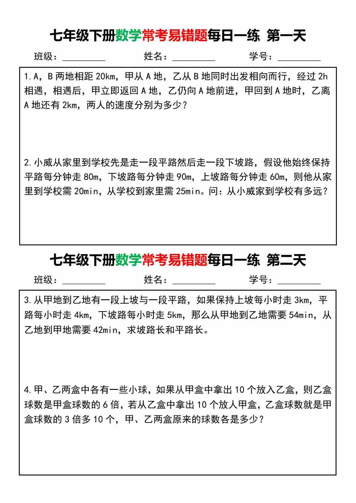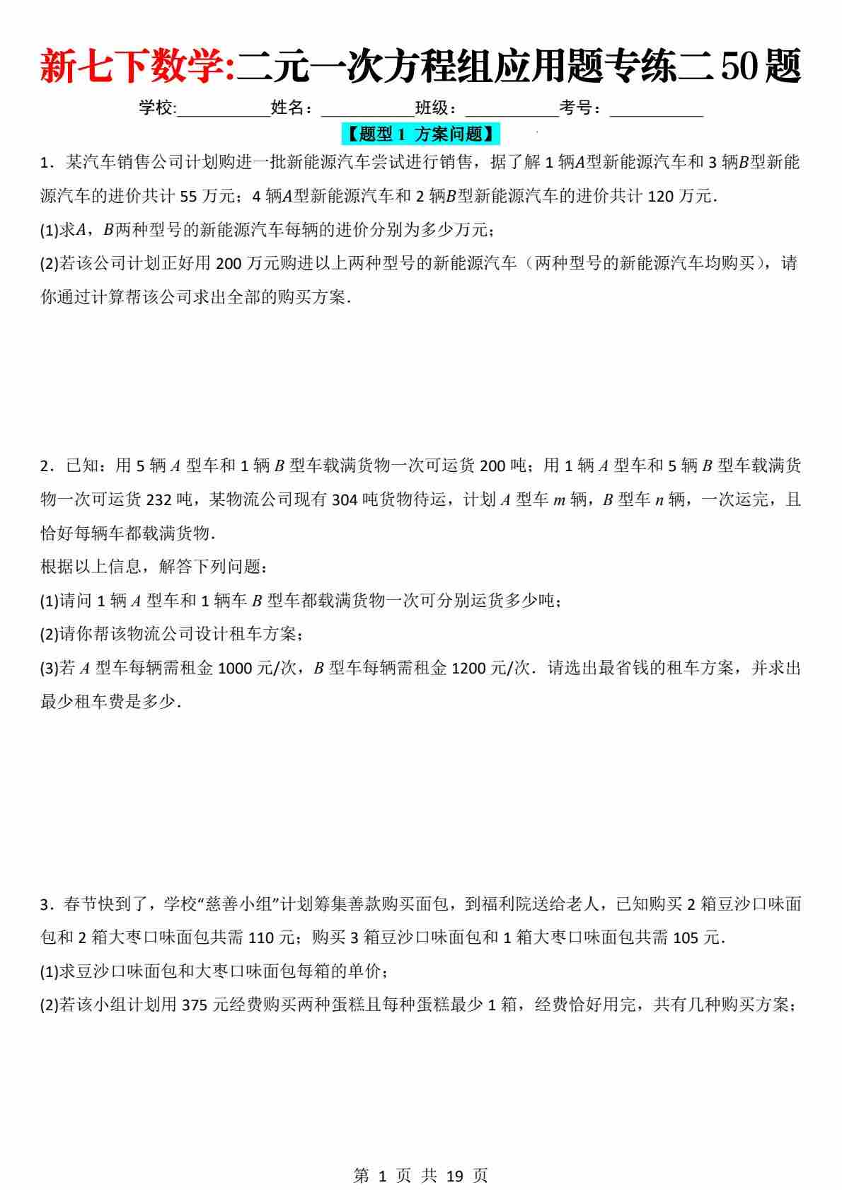 七年级下册数学二元一次方程组应用题分类训练2(原卷版)