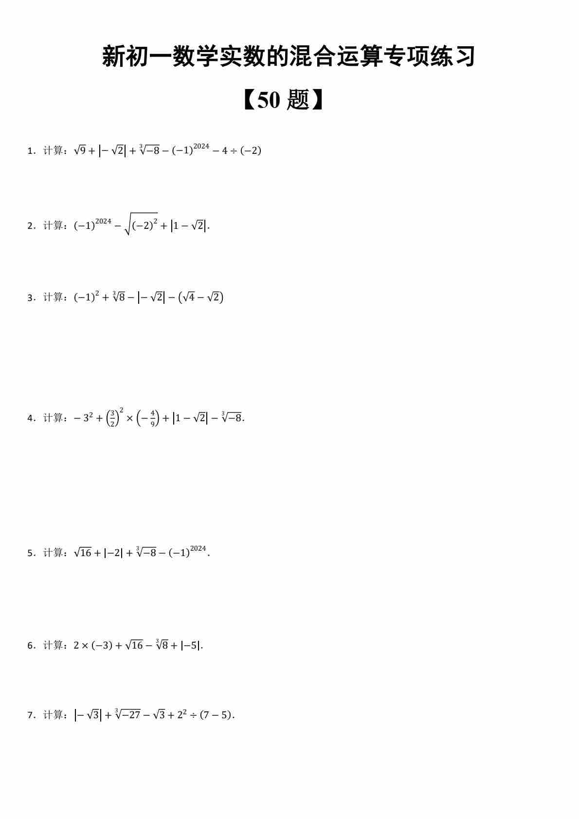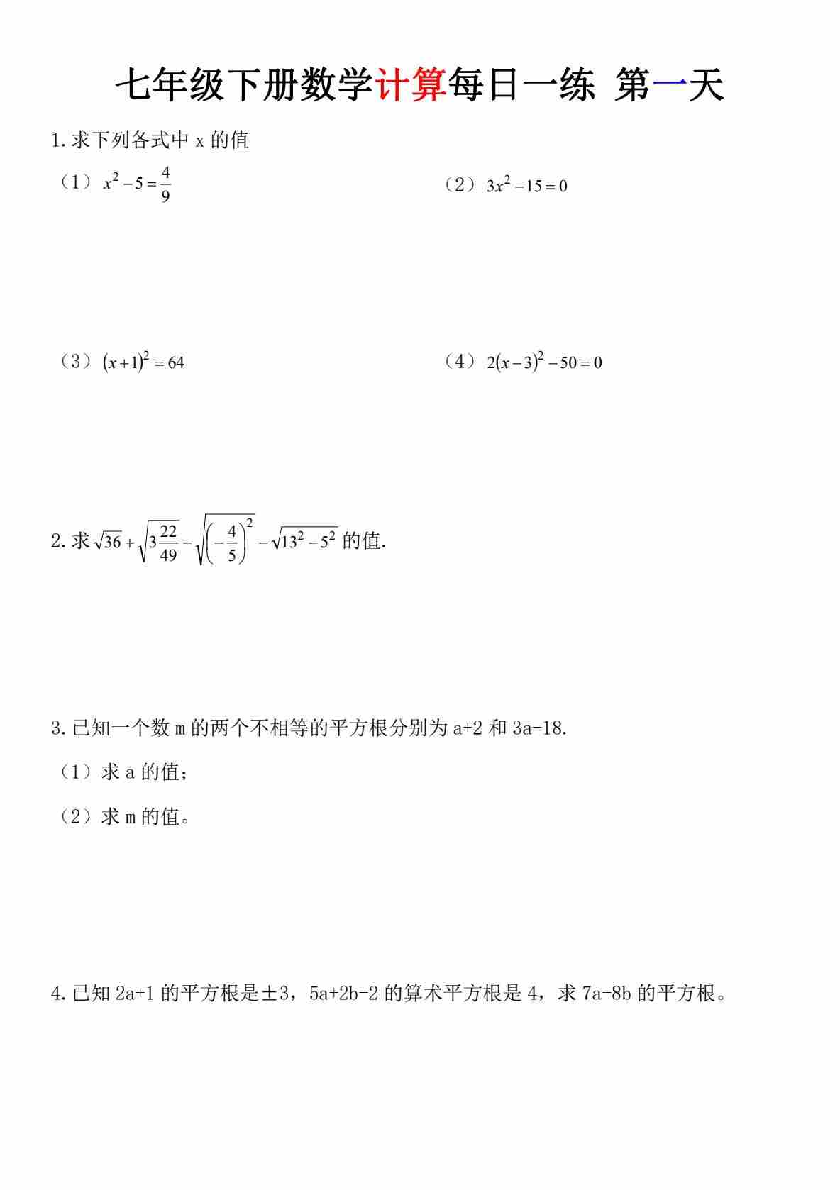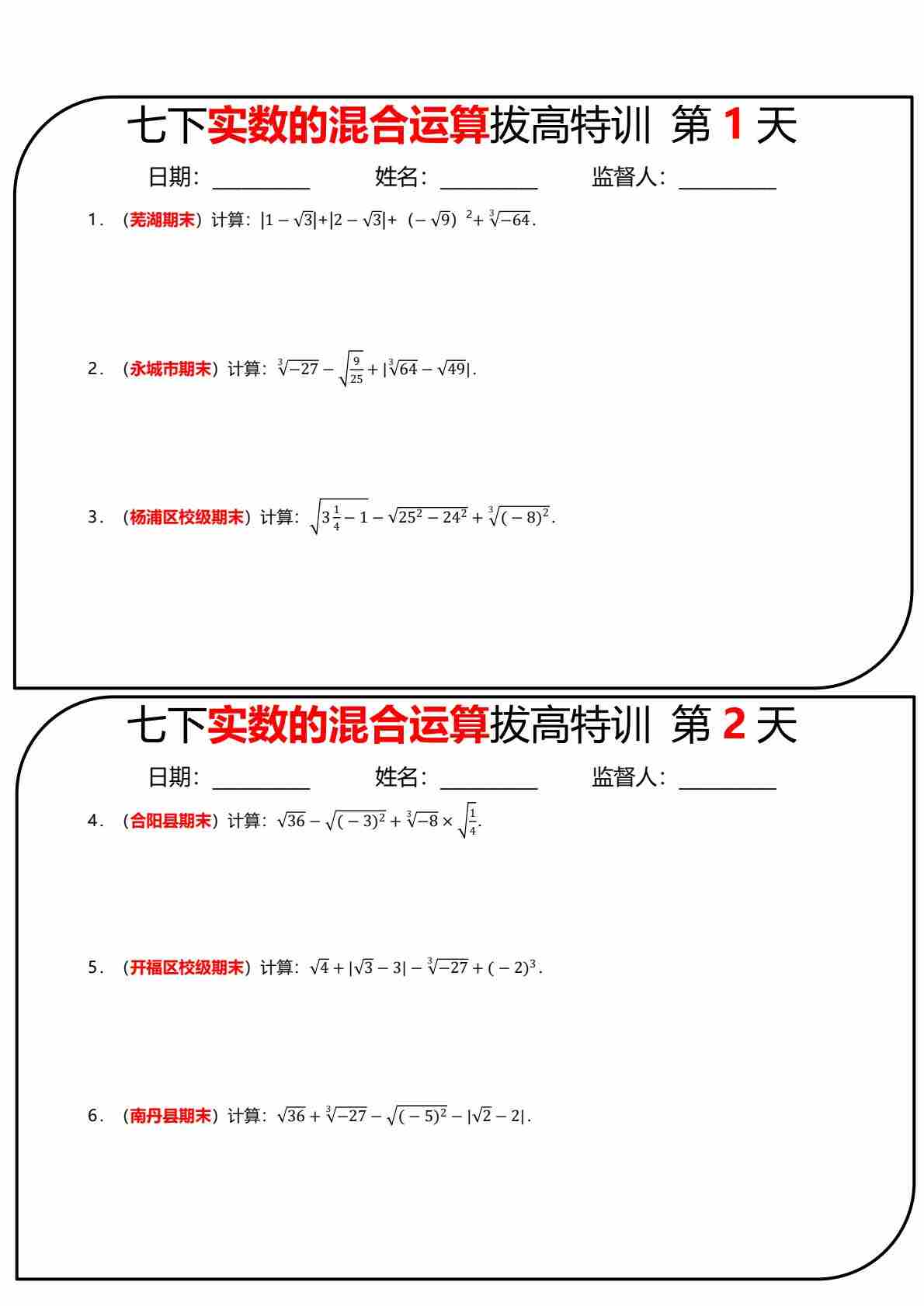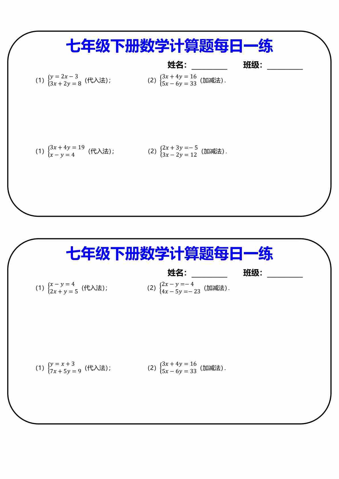 七下数学期末复习——四大常考计算题题型总结(人教版2024)(原卷版)