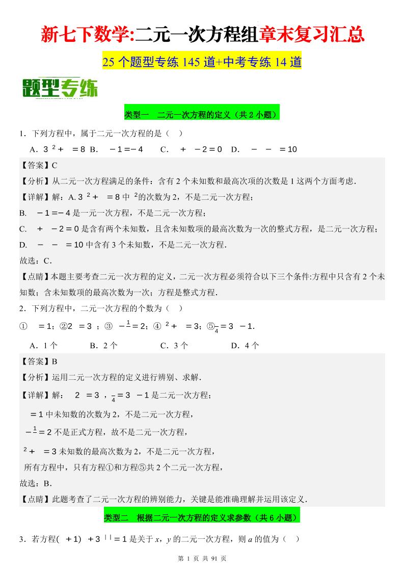 七年级下册数学二元一次方程组(25个题型专练145道中考专练14道)(解析版).docx