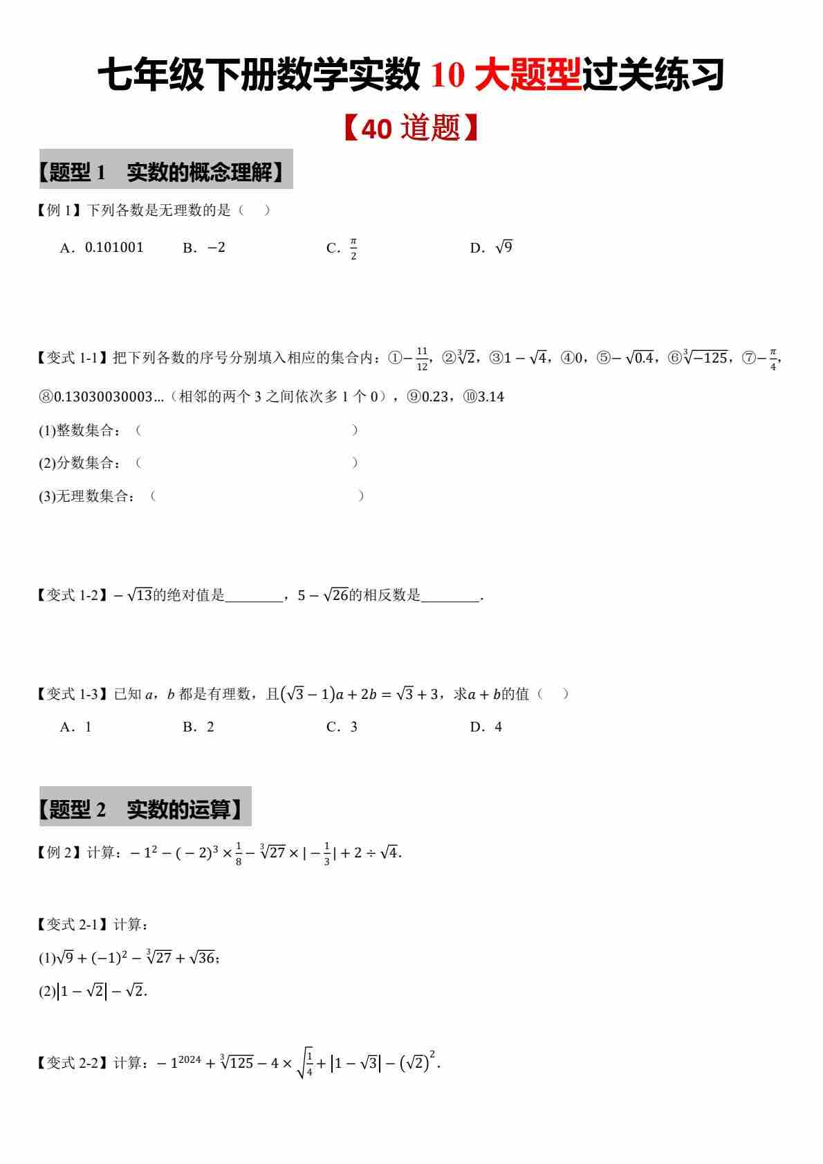 七下数学期末复习——四大常考计算题题型总结(人教版2024)(原卷版)