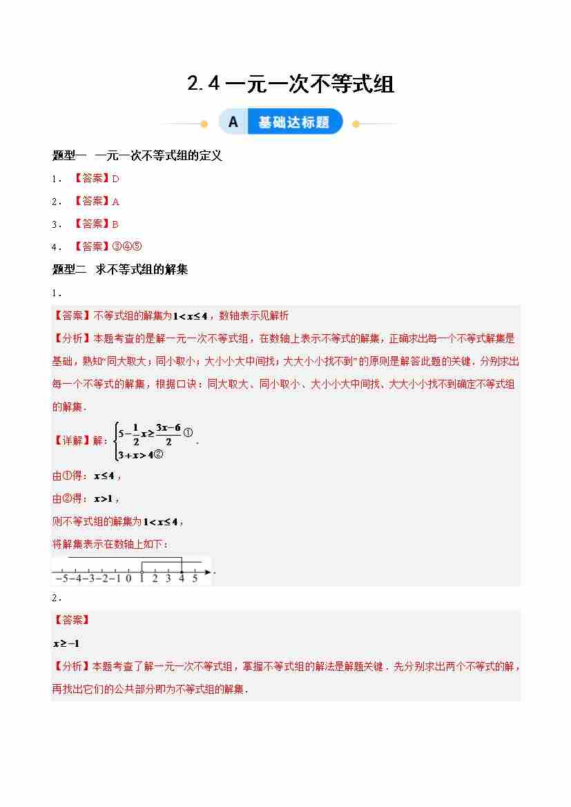 2.4一元一次不等式组(题型专练)(答案版)