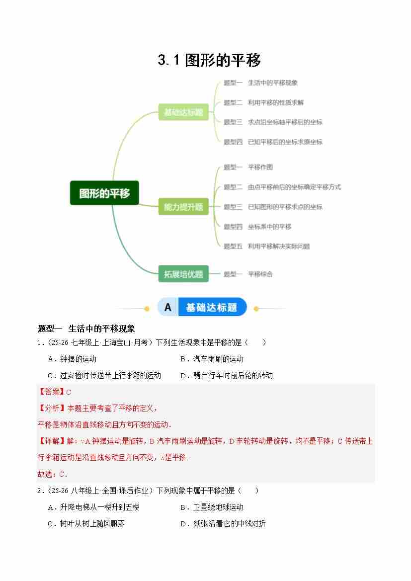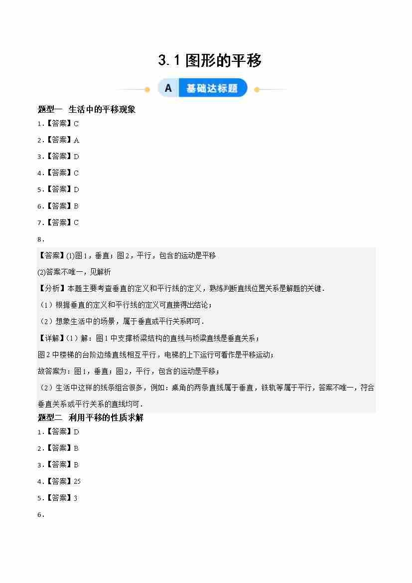 3.1图形的平移(题型专练)(答案版)