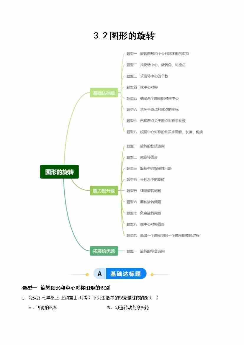 3.2图形的旋转(题型专练)(原卷版)