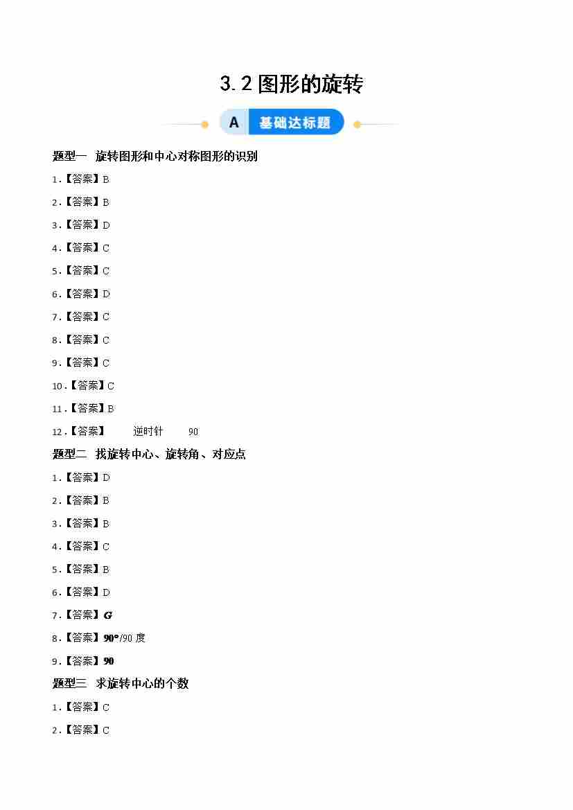 3.2图形的旋转(题型专练)(答案版)