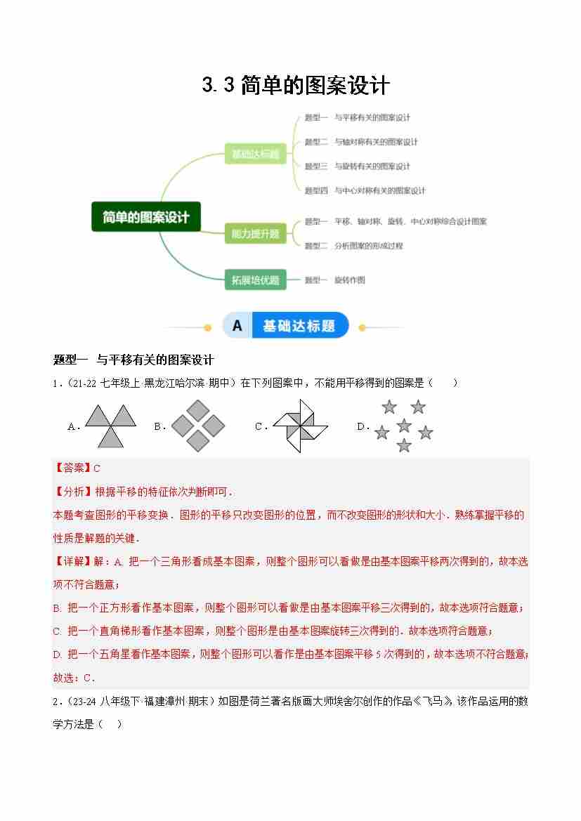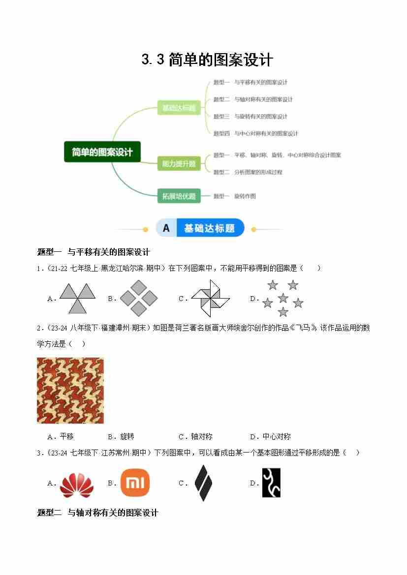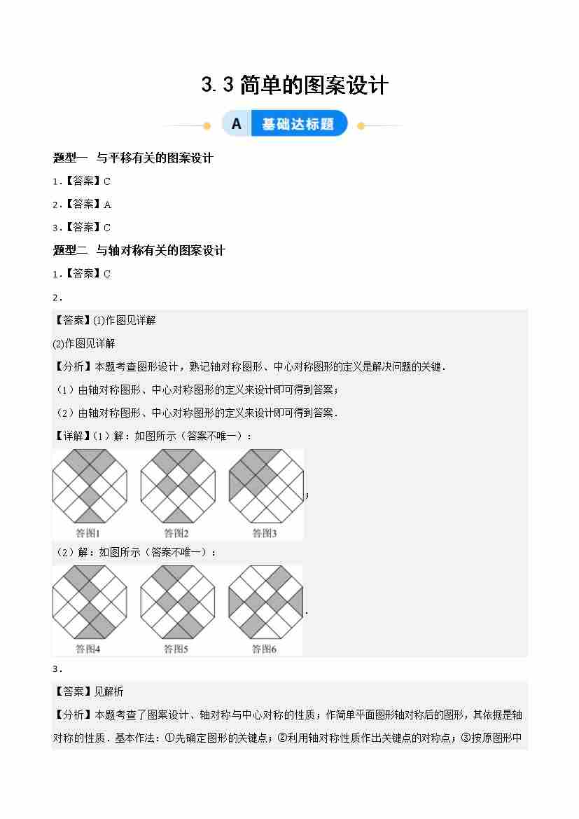 3.3简单单图案设计(题型专练)(答案版)