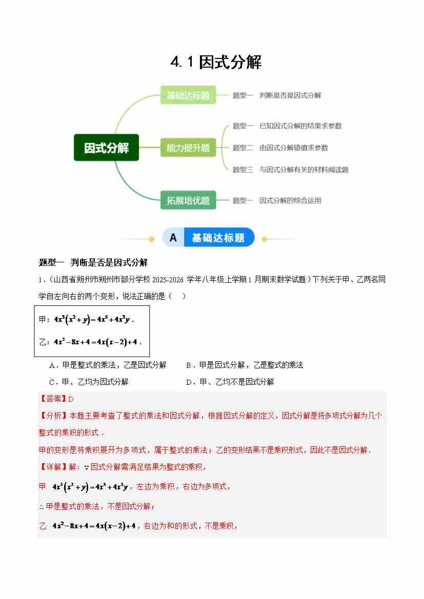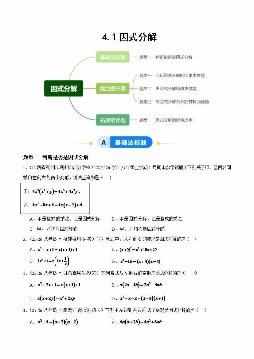 4.1因式分解(题型专练)(原卷版)