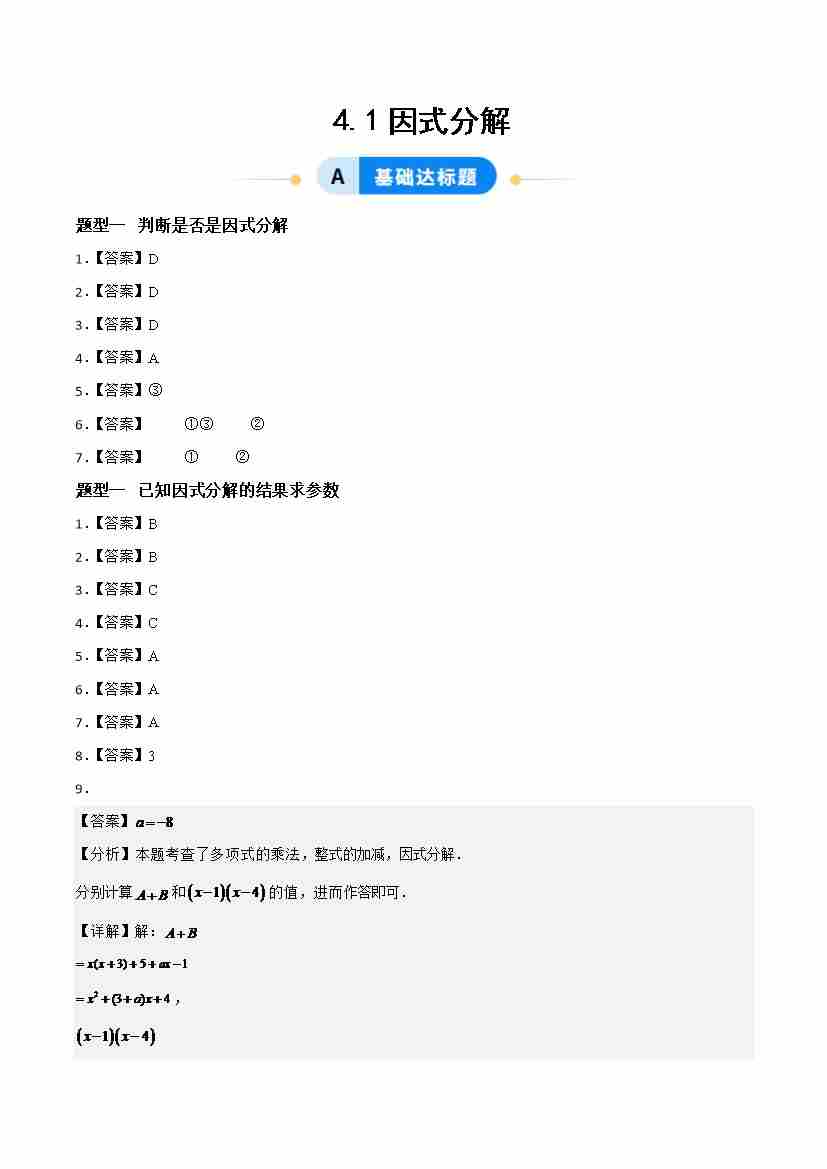 4.1因式分解(题型专练)(答案版)