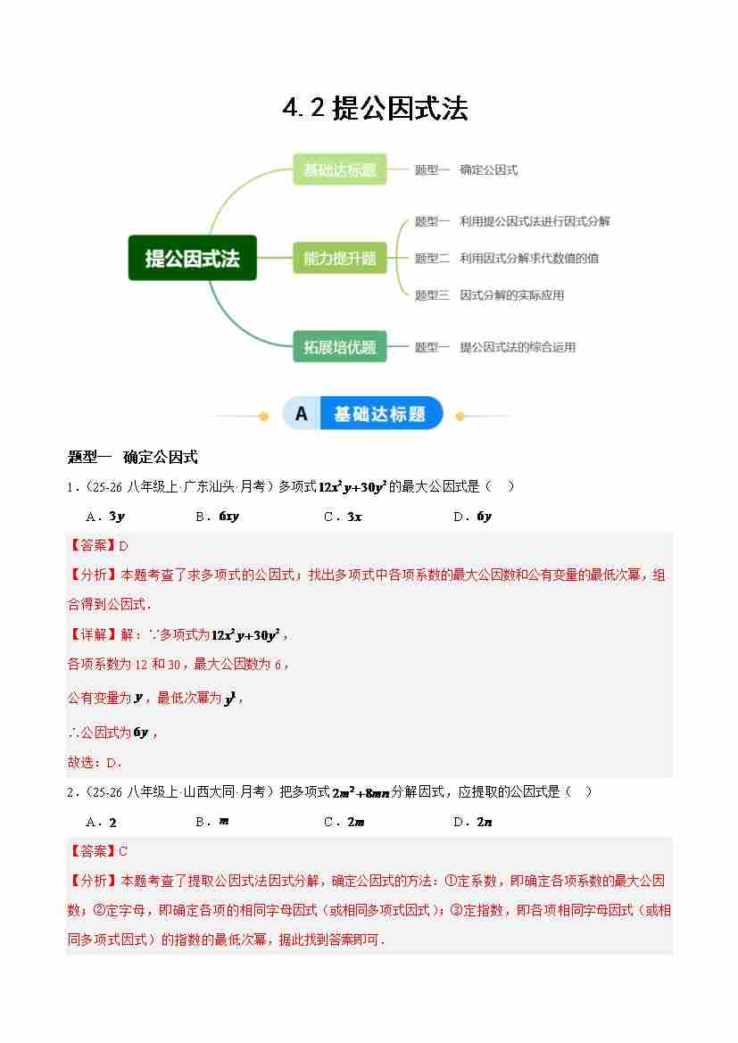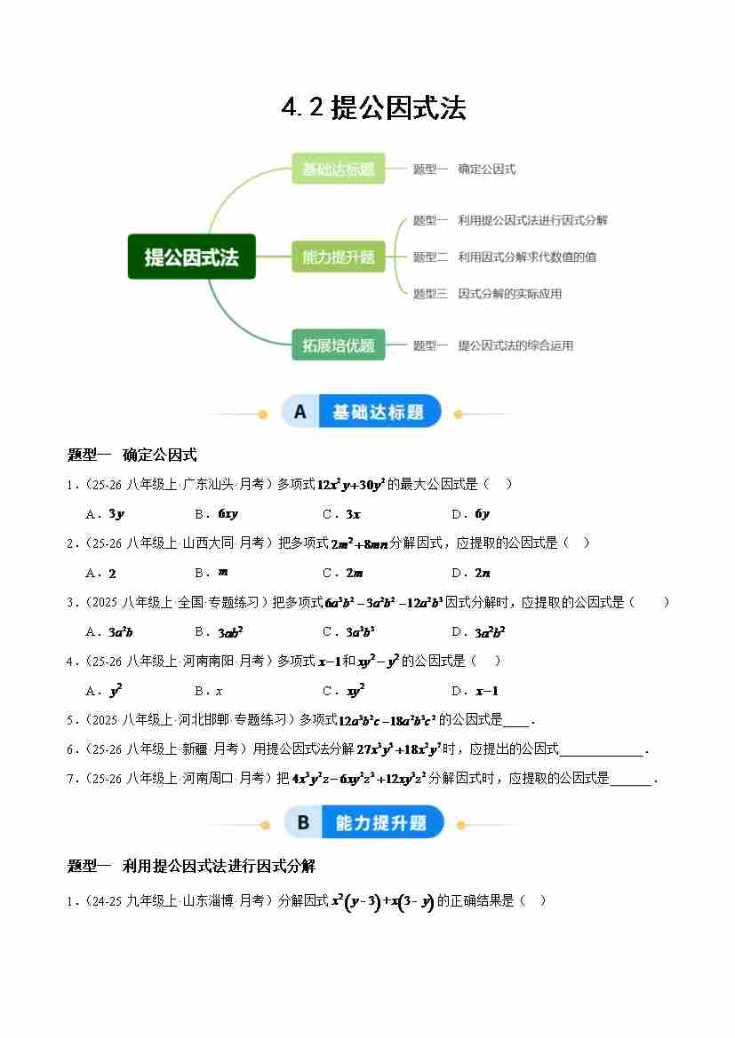 4.2提公因式法(题型专练)(原卷版)