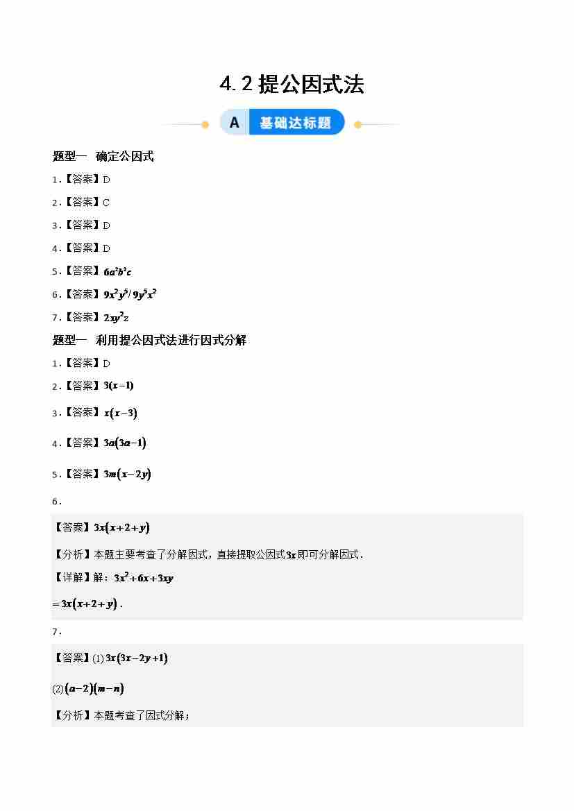 4.2提公因式法(题型专练)(答案版)