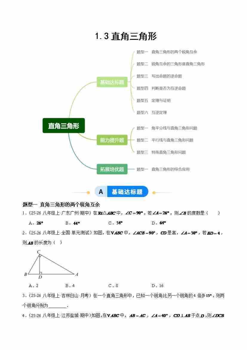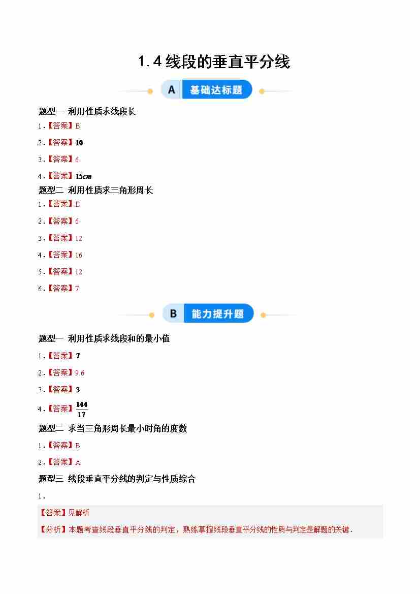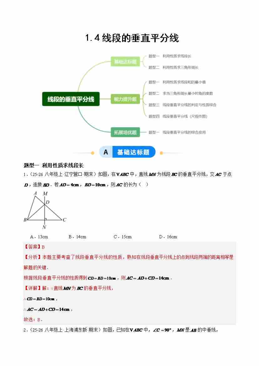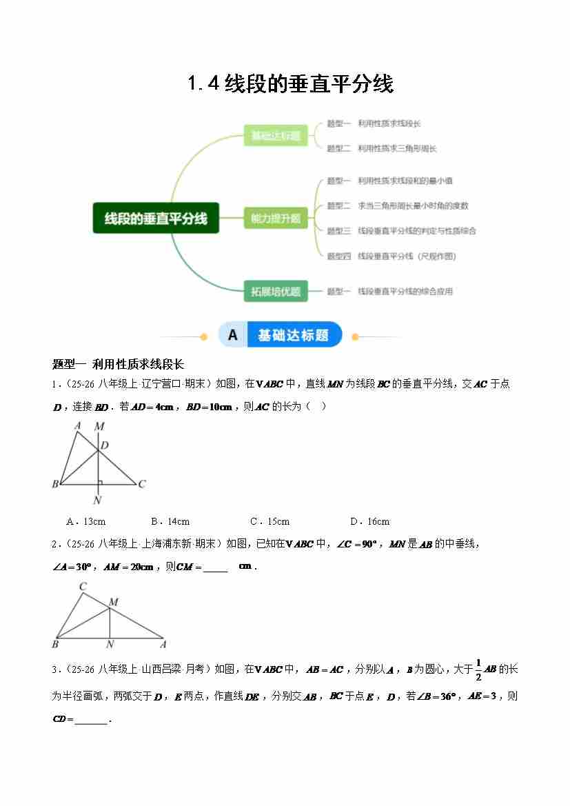 1.4线段的垂直平分线(题型专练)(原卷版)