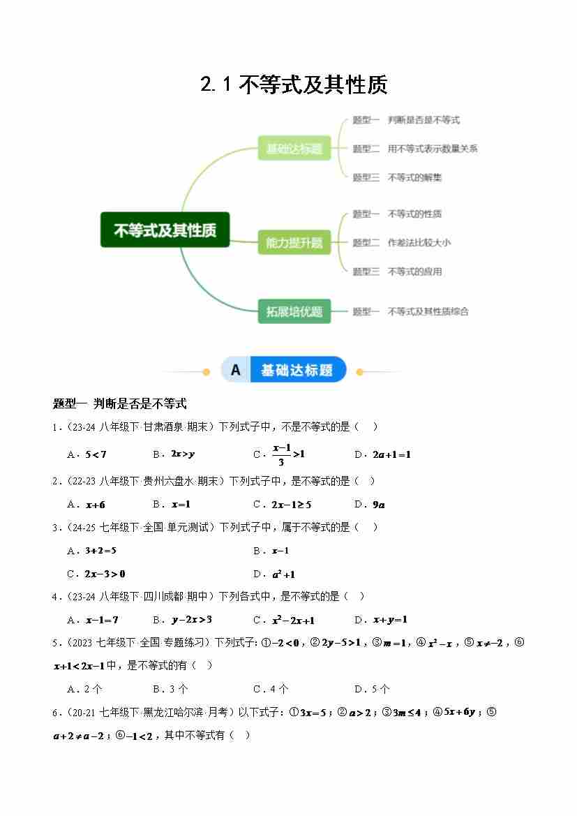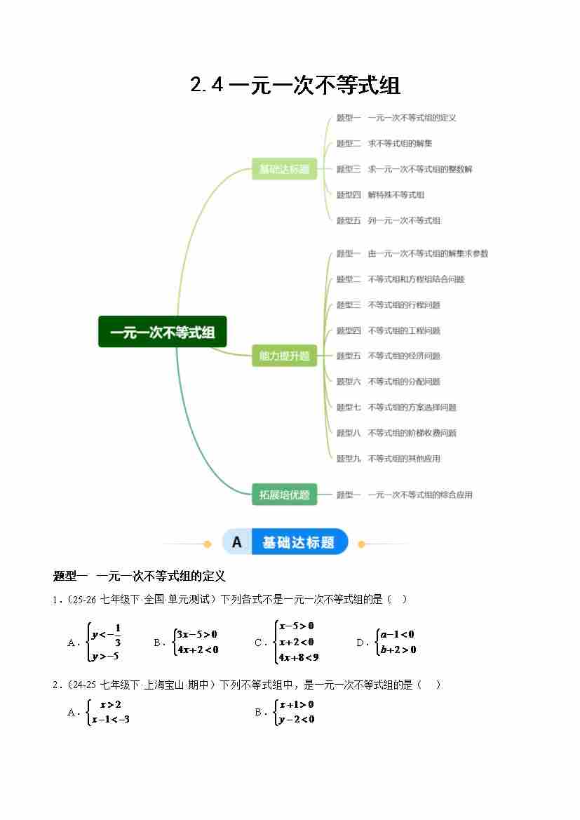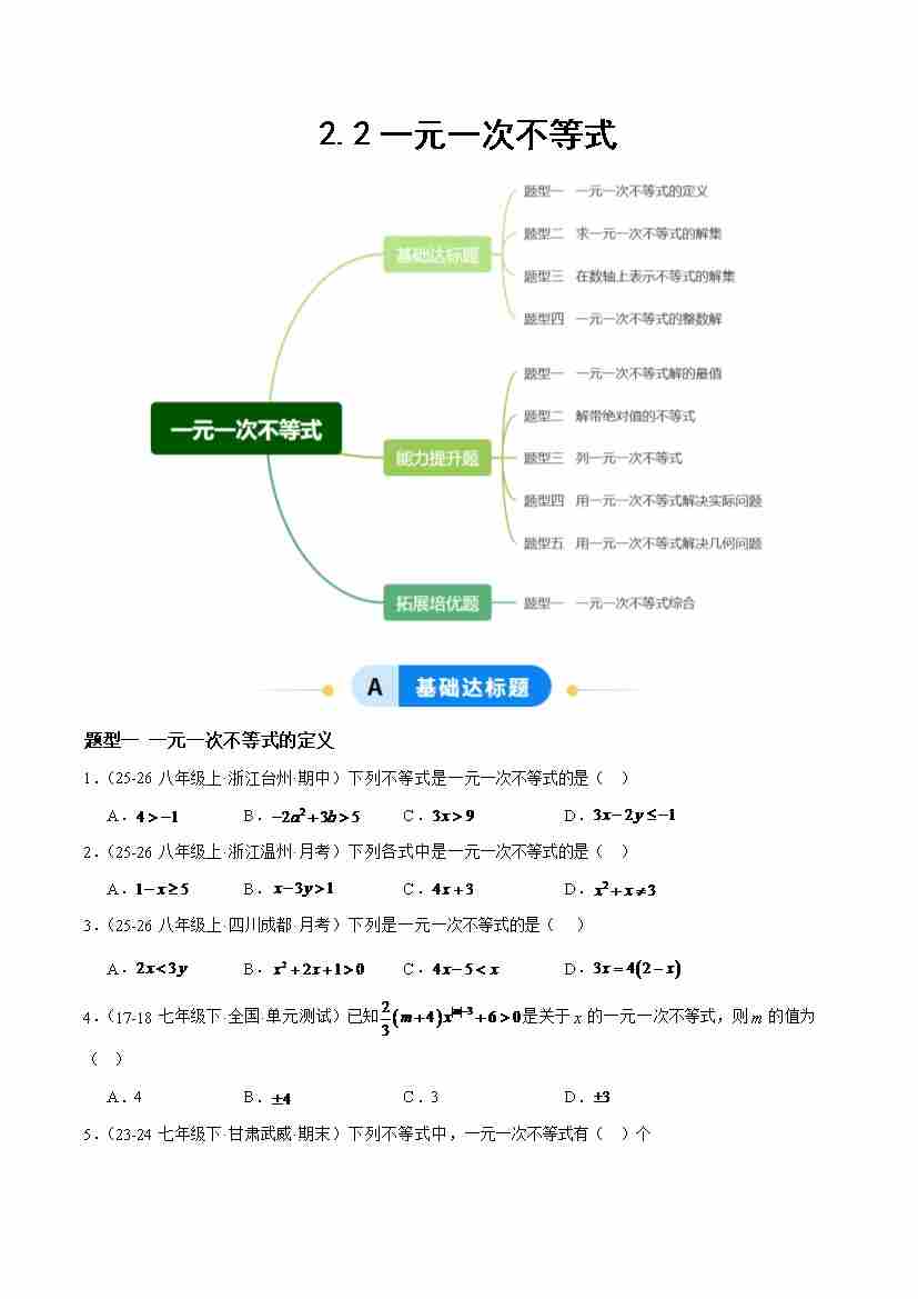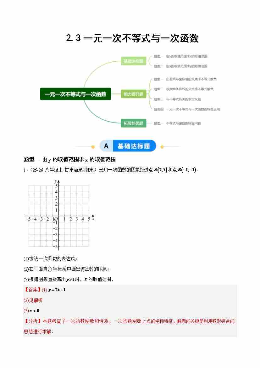 2.3一元一次不等式与一次函数(题型专练)(原卷版)