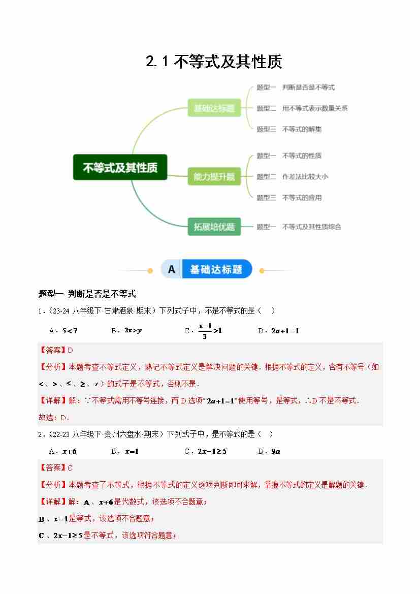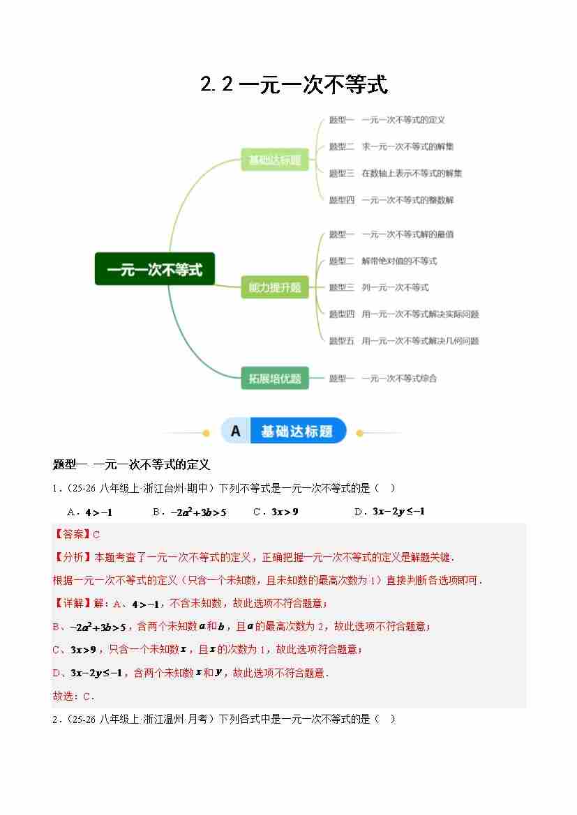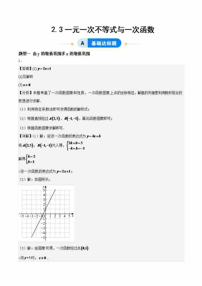 2.3一元一次不等式与一次函数(题型专练)(答案版)