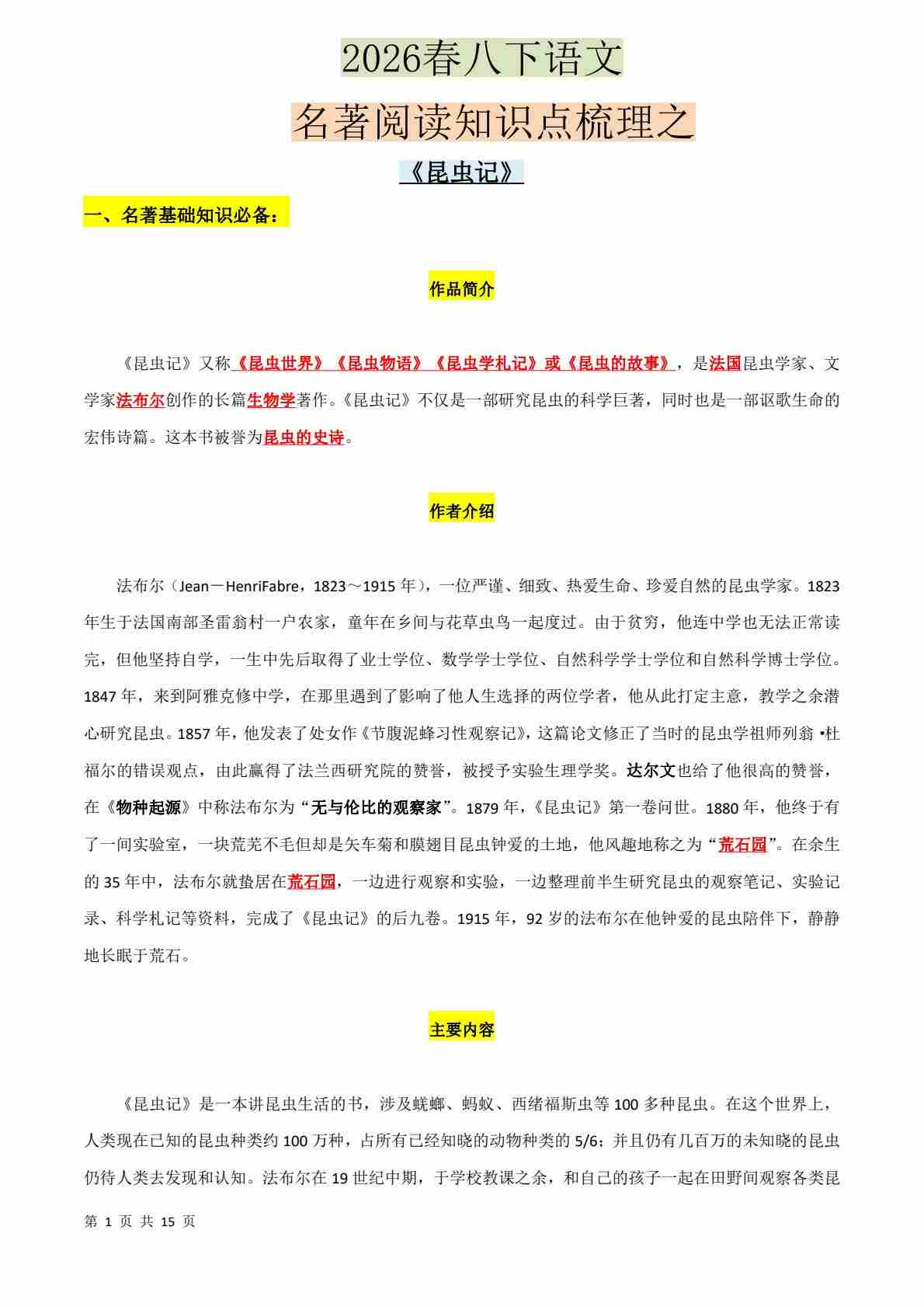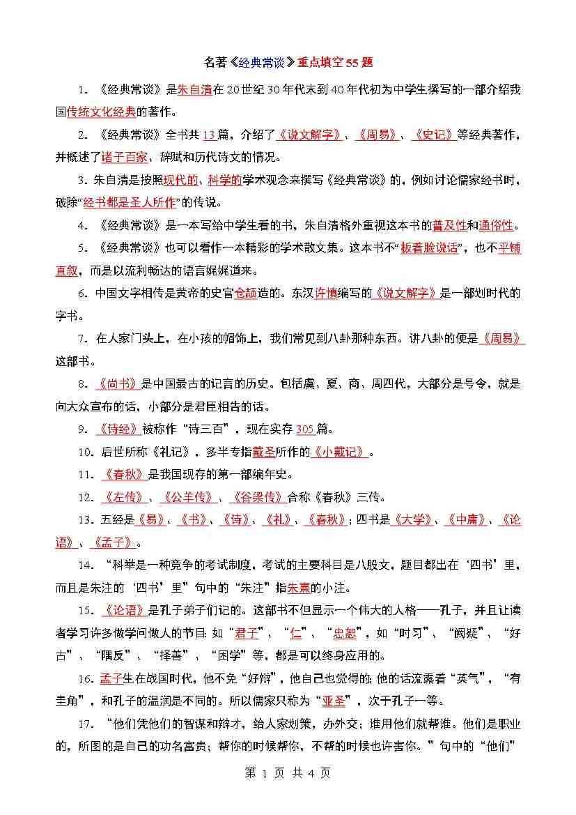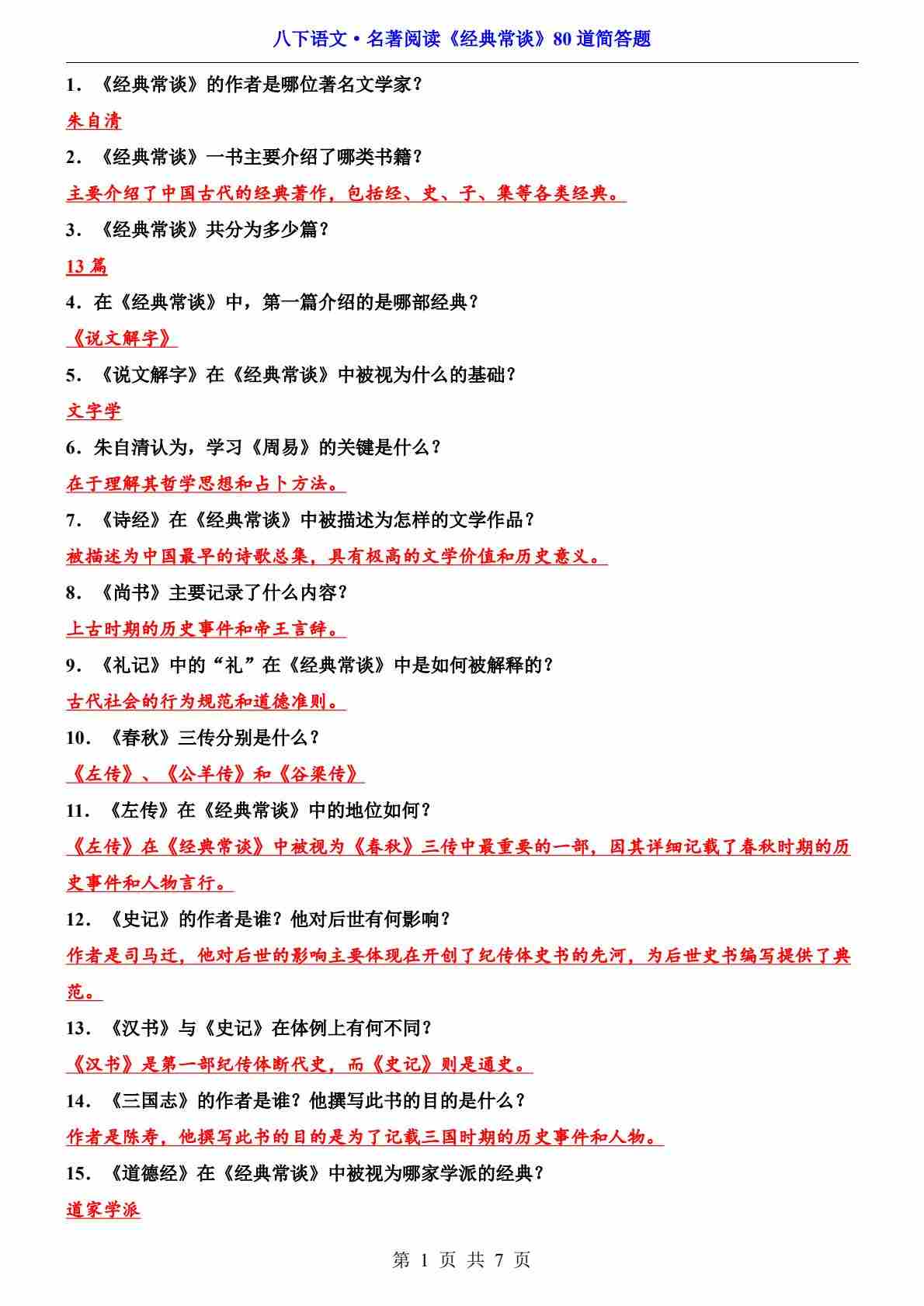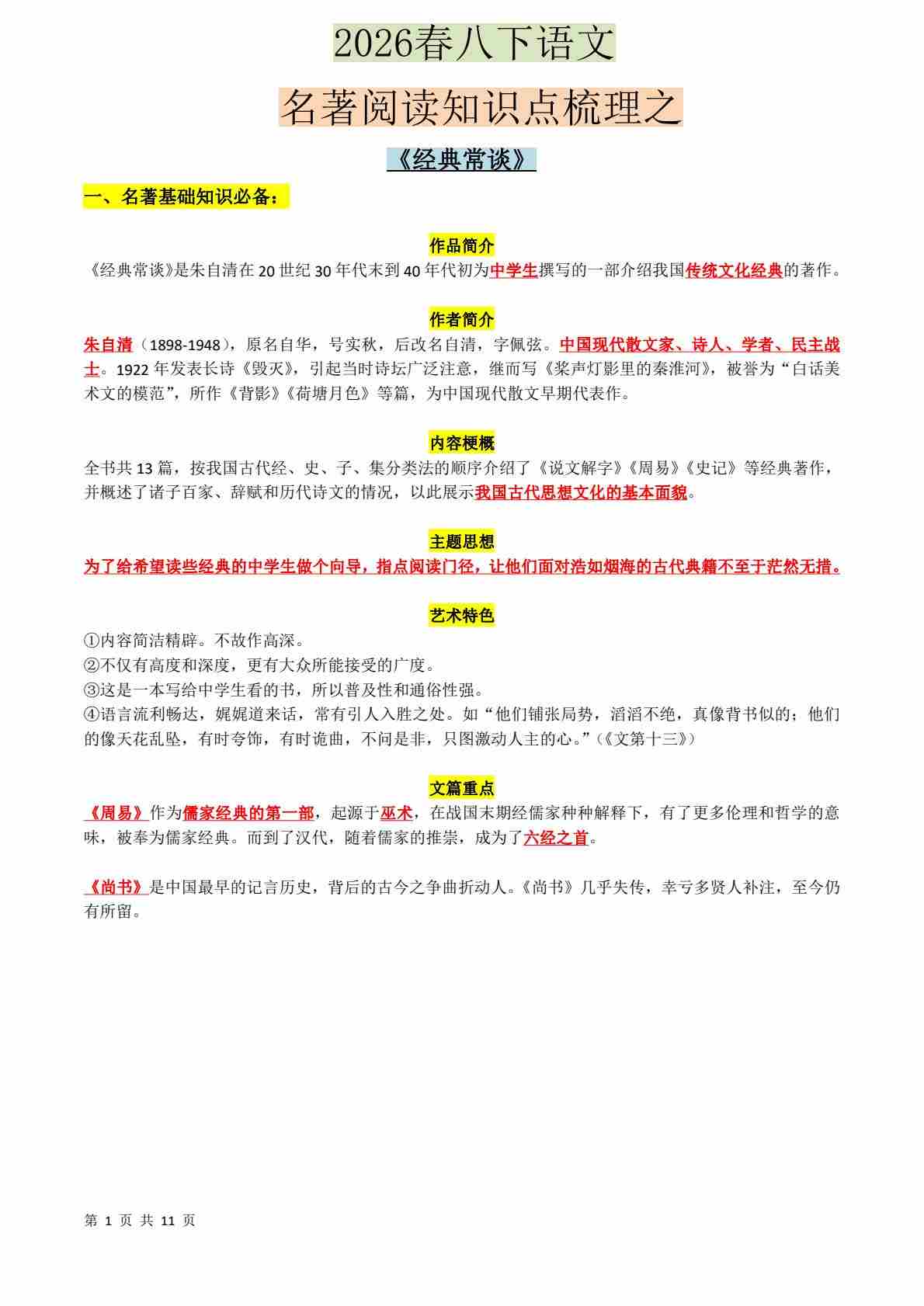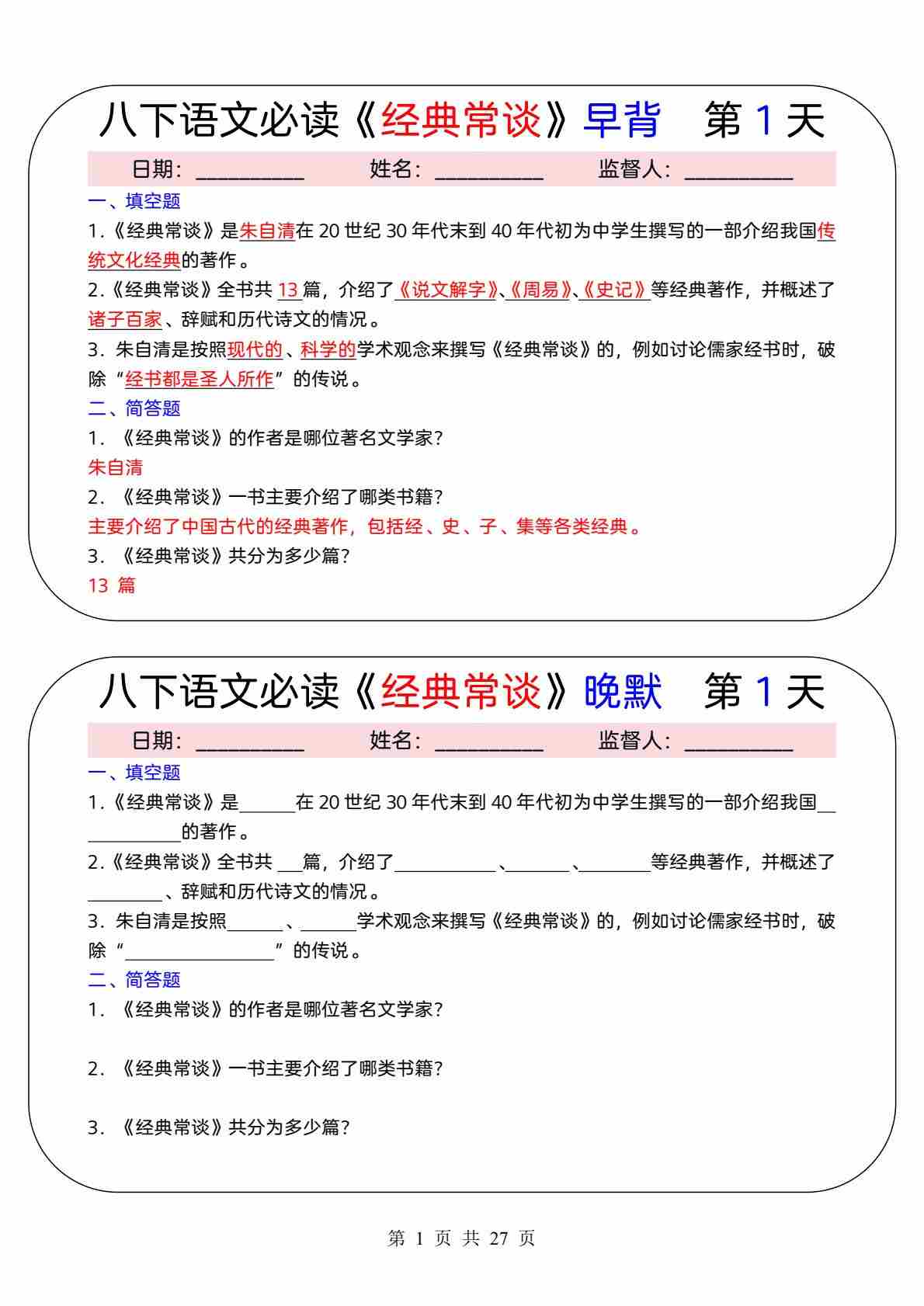 八下语文必读《经典常谈》早背晚默27天小纸条_