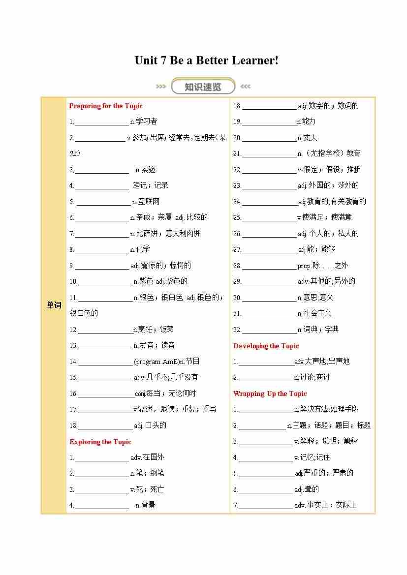 Unit 7 Be a Better Learner! (知识清单)(挖空版)