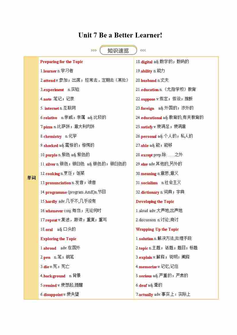 Unit 7 Be a Better Learner! (知识清单)(答案版)