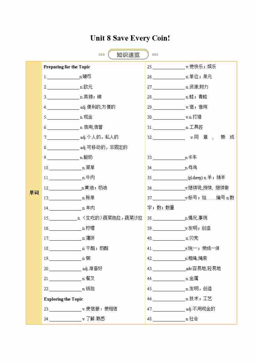 Unit 8 Save Every Coin!(知识清单)(挖空版)
