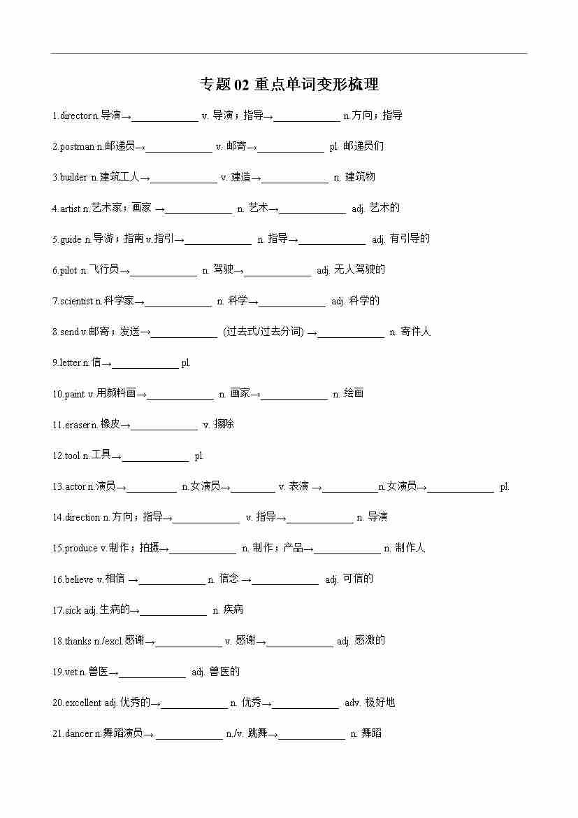 专题02 重点单词变形梳理(原卷版)