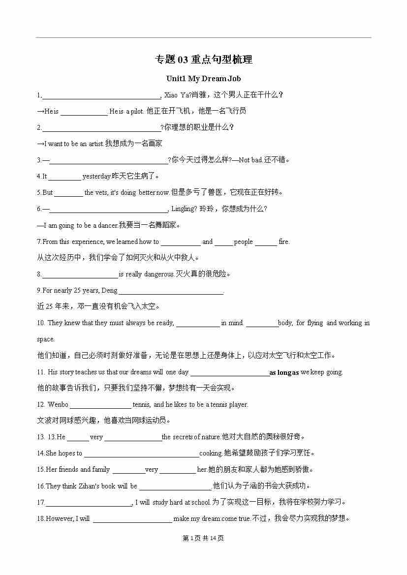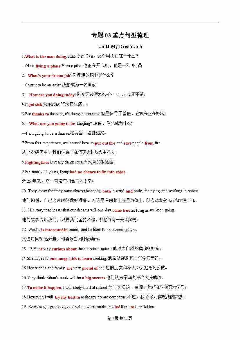 专题03 重点句型梳理(解析版)