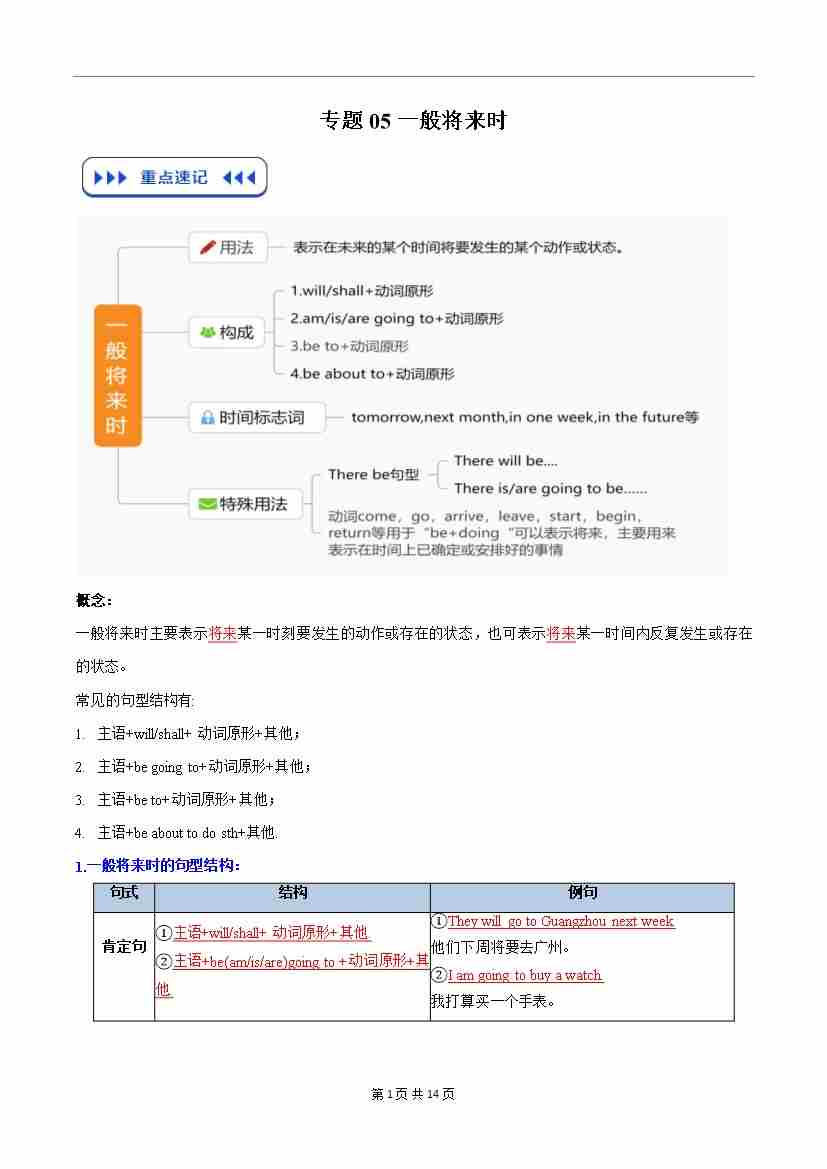 专题05 一般将来时(解析版)