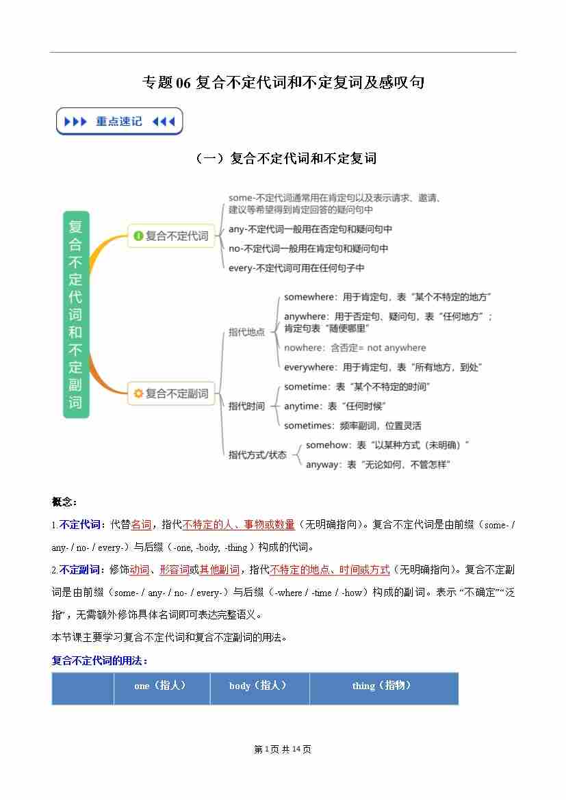 专题06 复合不定代词和不定复词及感叹句(原卷版)