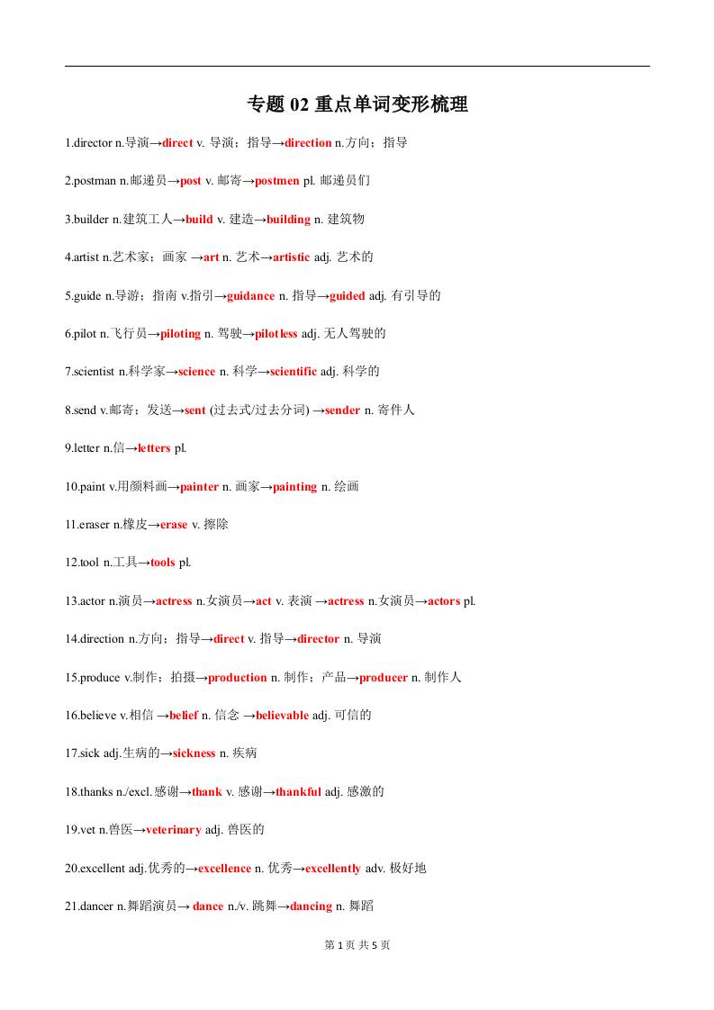 专题02 重点单词变形梳理(解析版)1