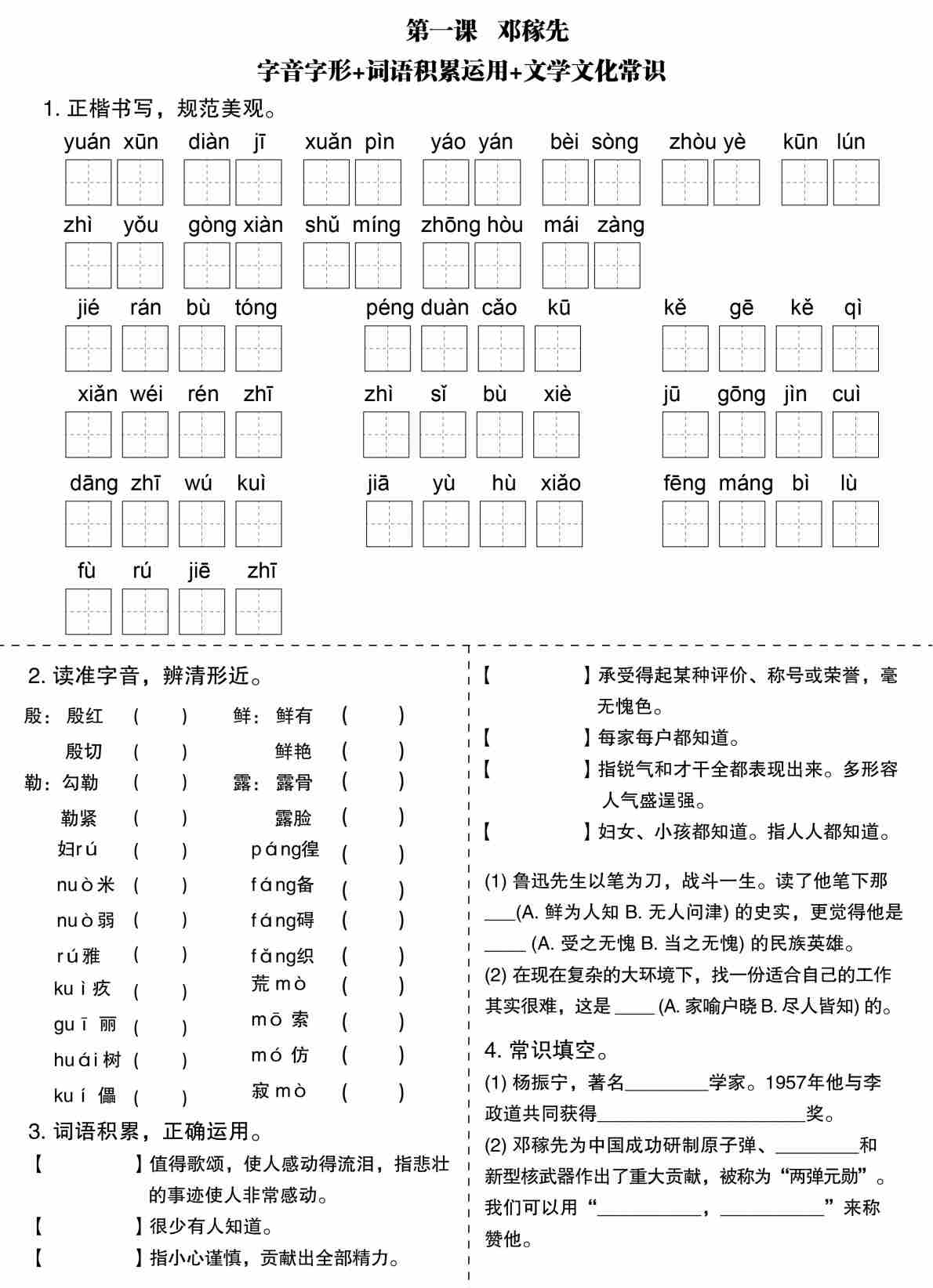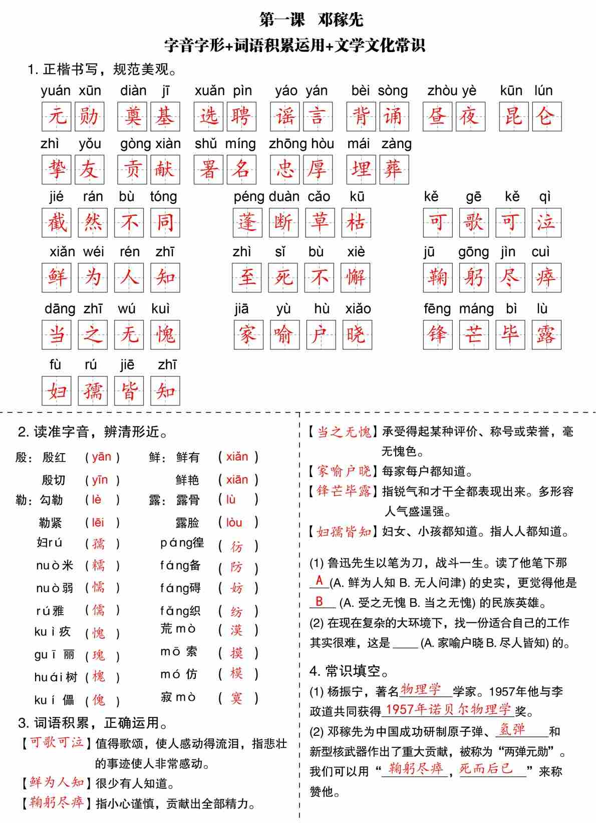 新七下语文字词基础知识-答案