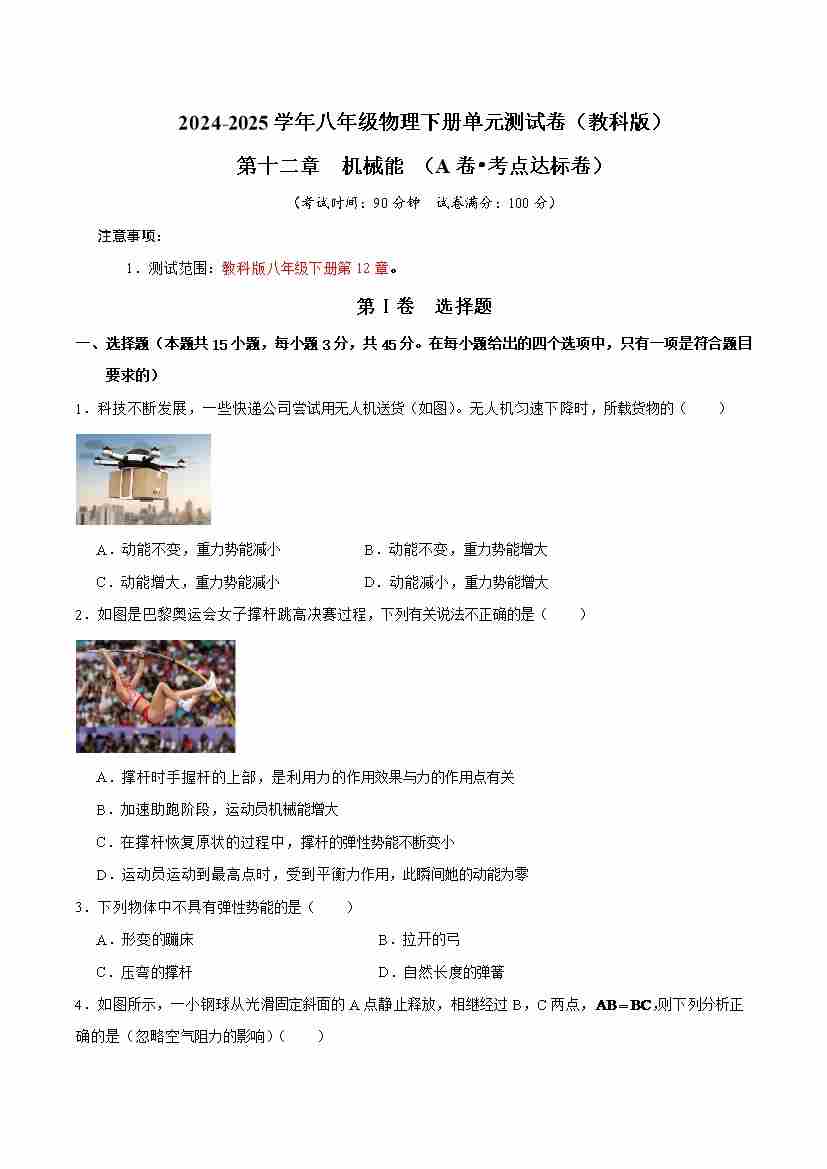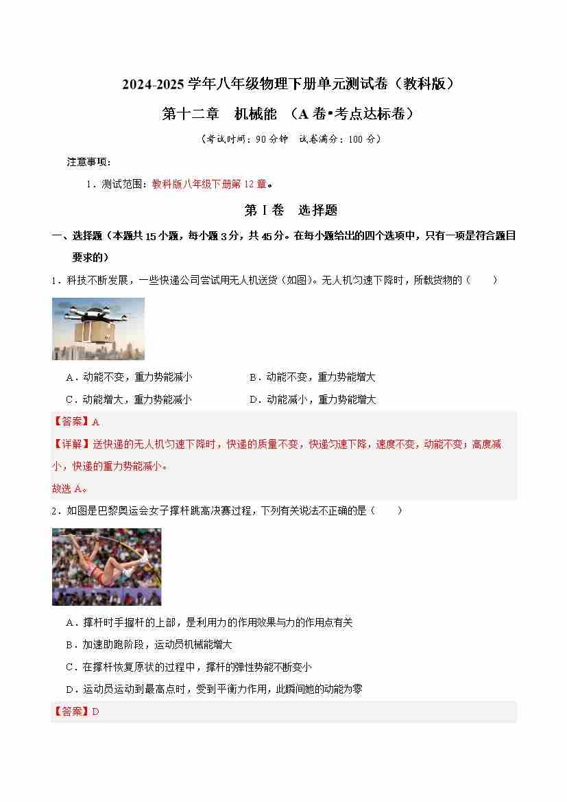 第12章 力机械能(A卷 达标卷)(学生版)